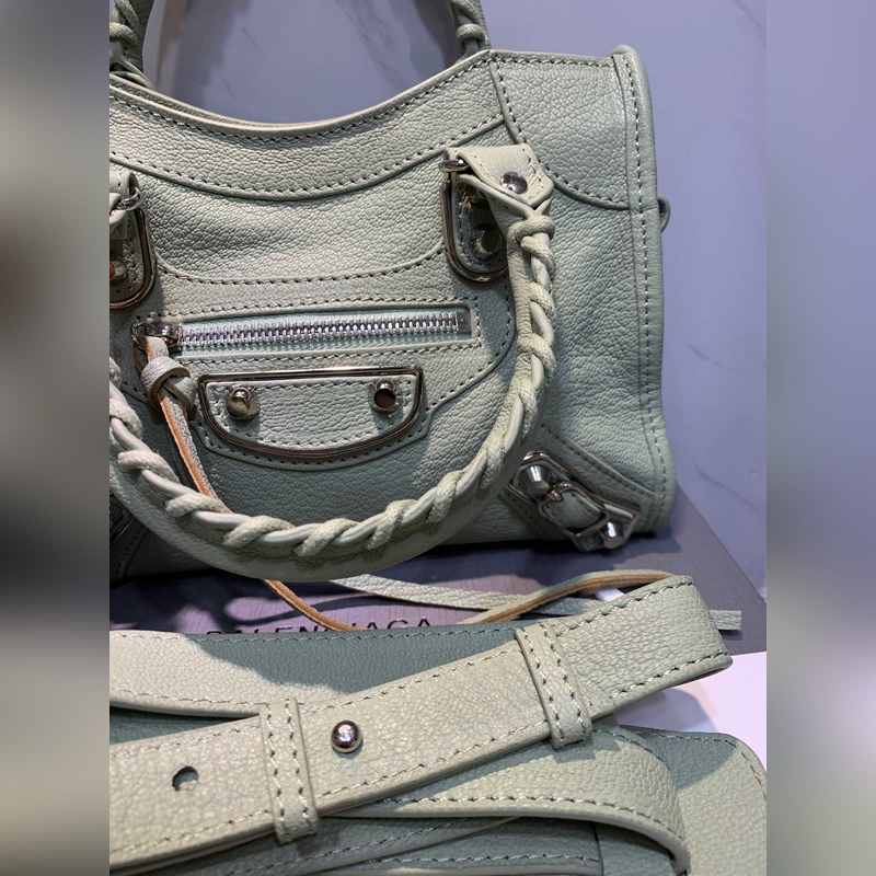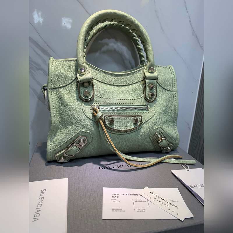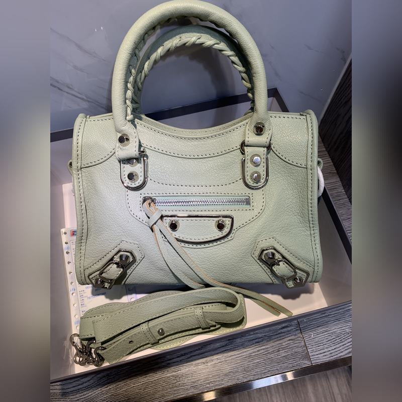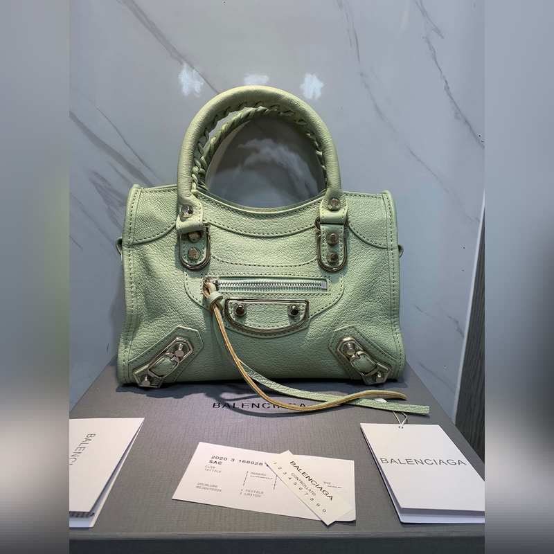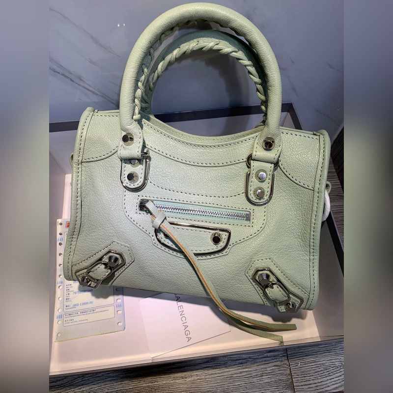 발렌시아가 염소 가죽 바이커 백 민트 그린 소 24cm 크기 24.15