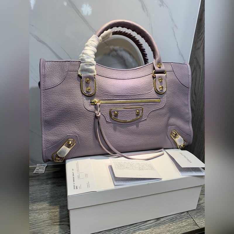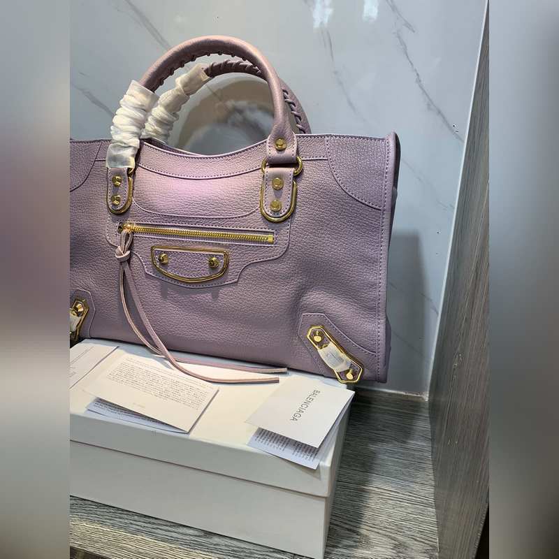 발렌시아가 염소 가죽 오토바이 가방 보라색 대형 38cm 크기 38