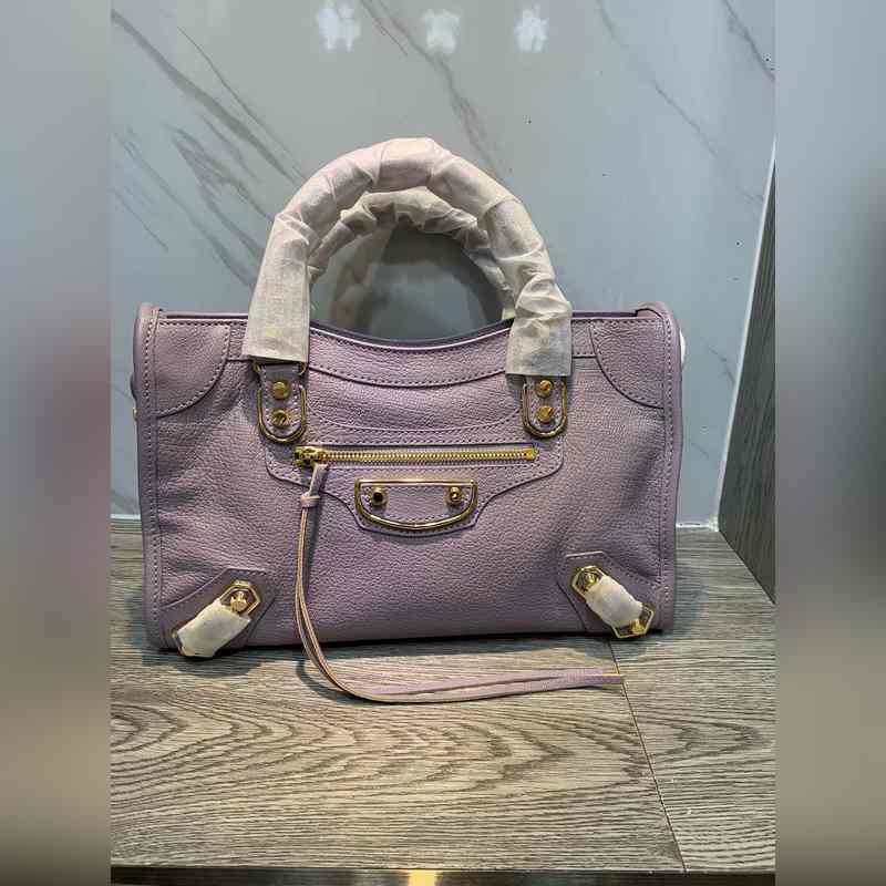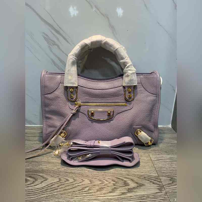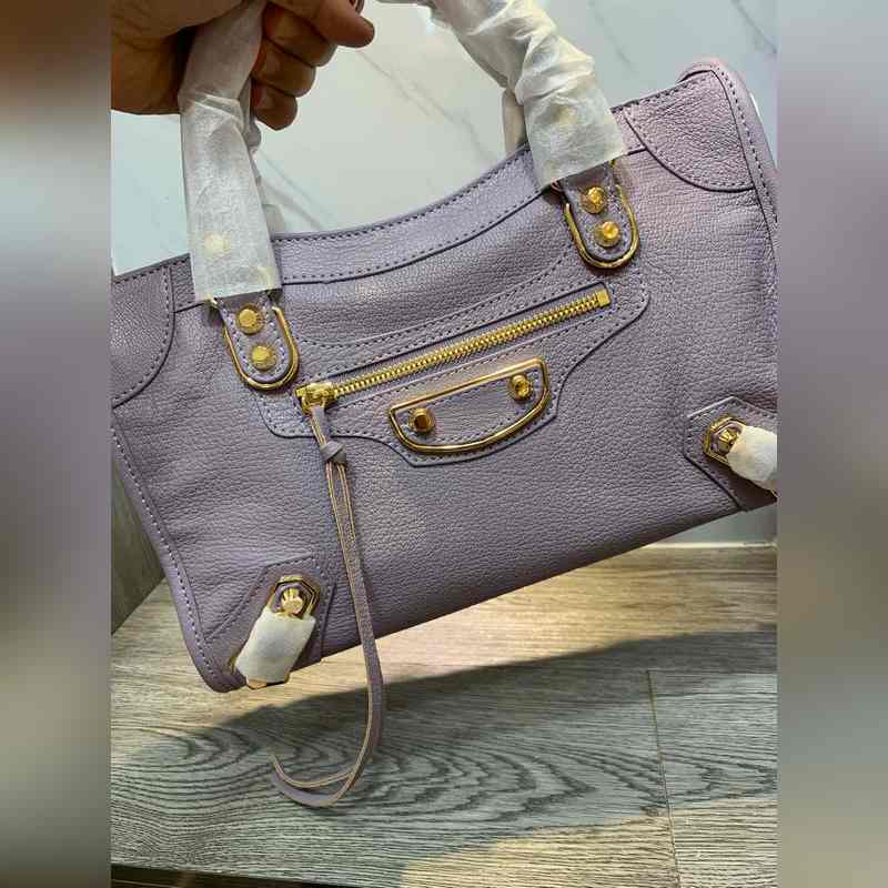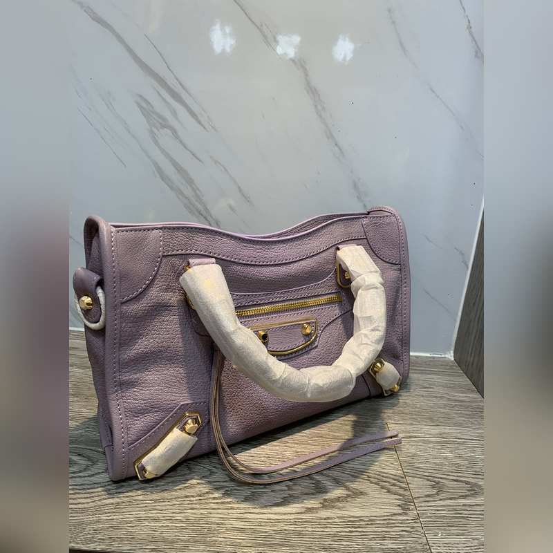 발렌시아가 염소 가죽 오토바이 가방 보라색 중형 30cm 크기 30.2