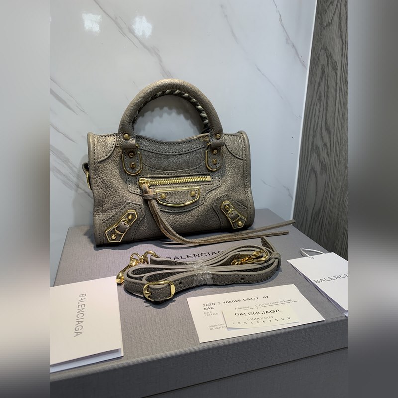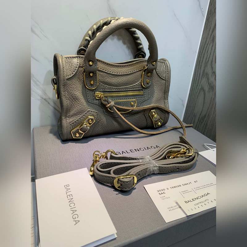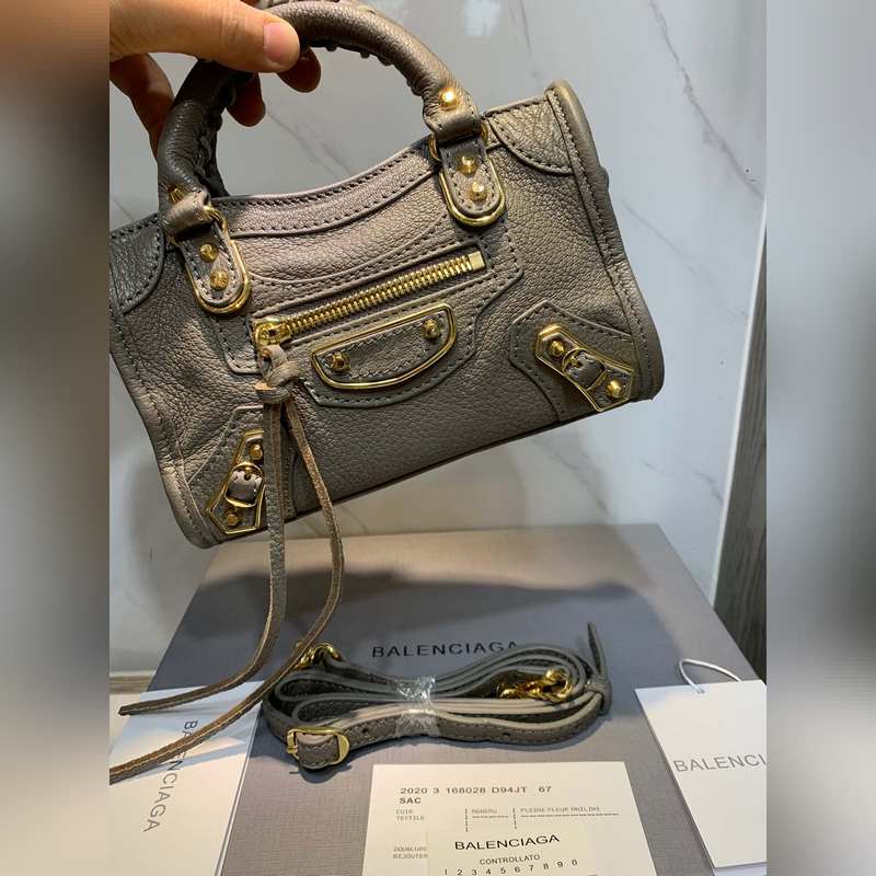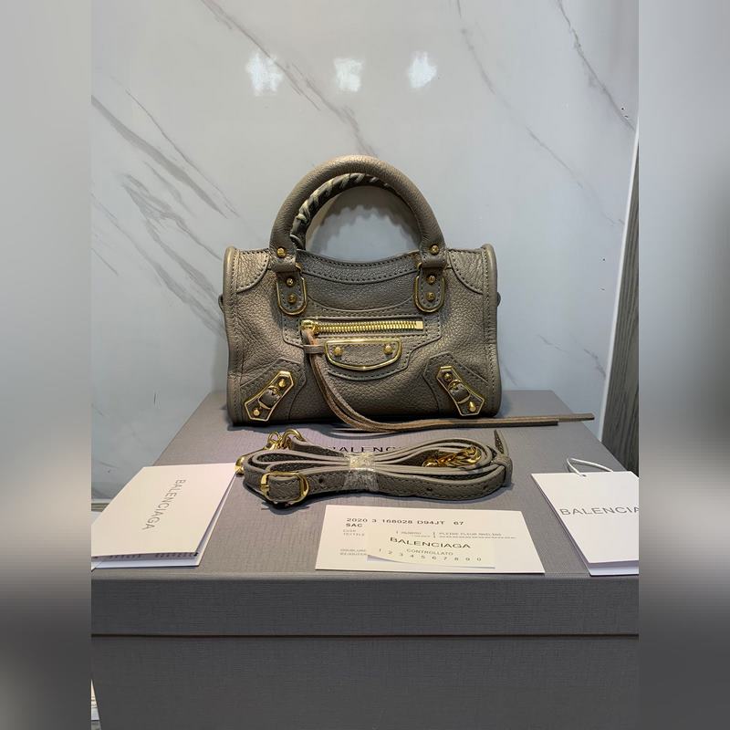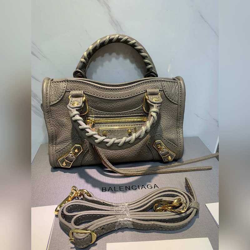 발렌시아가 염소 가죽 오토바이 가방 그레이 미니 나노 크기 20.5.