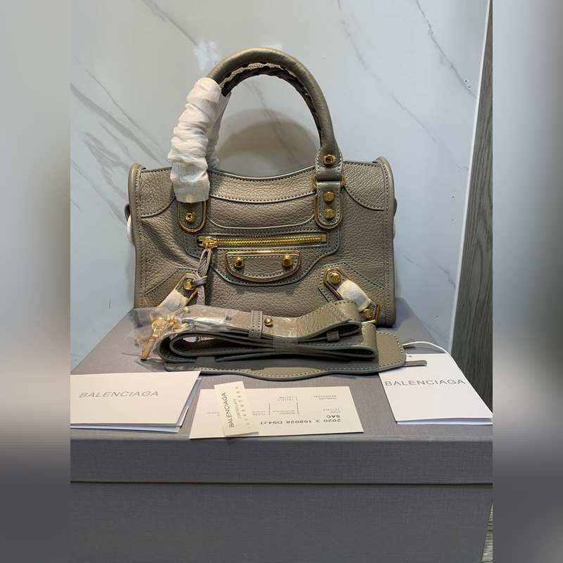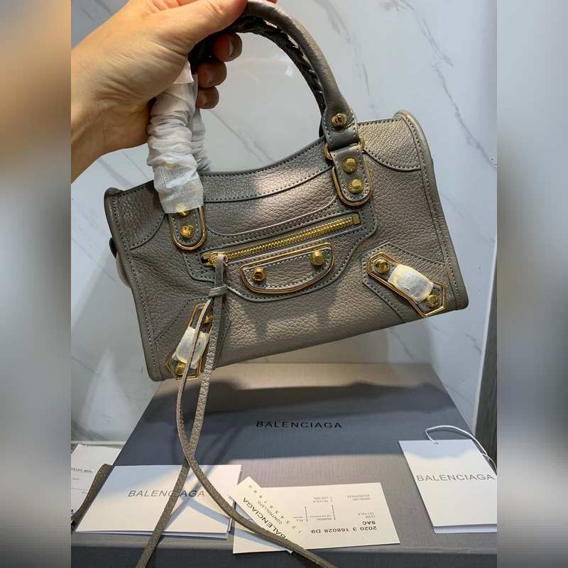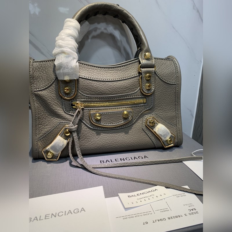 발렌시아가 염소 가죽 오토바이 가방 회색 소형 크기 24.15.9