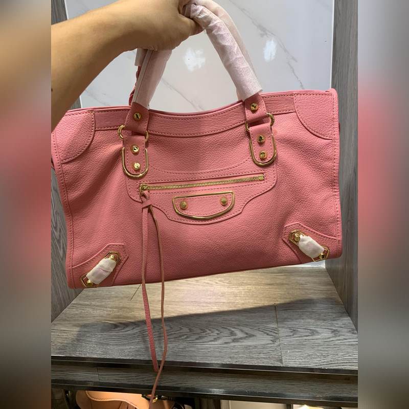 발렌시아가 염소 가죽 오토바이 가방 핑크색 대형 스터드 크기 38