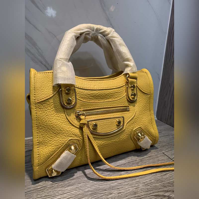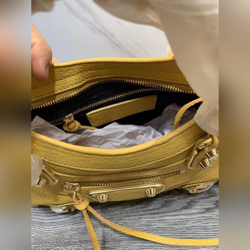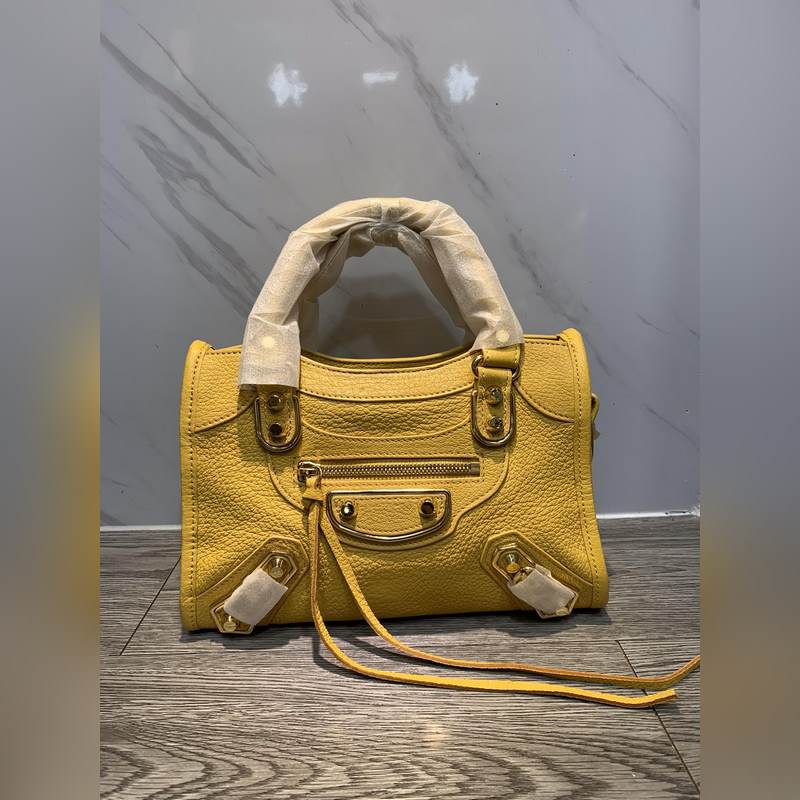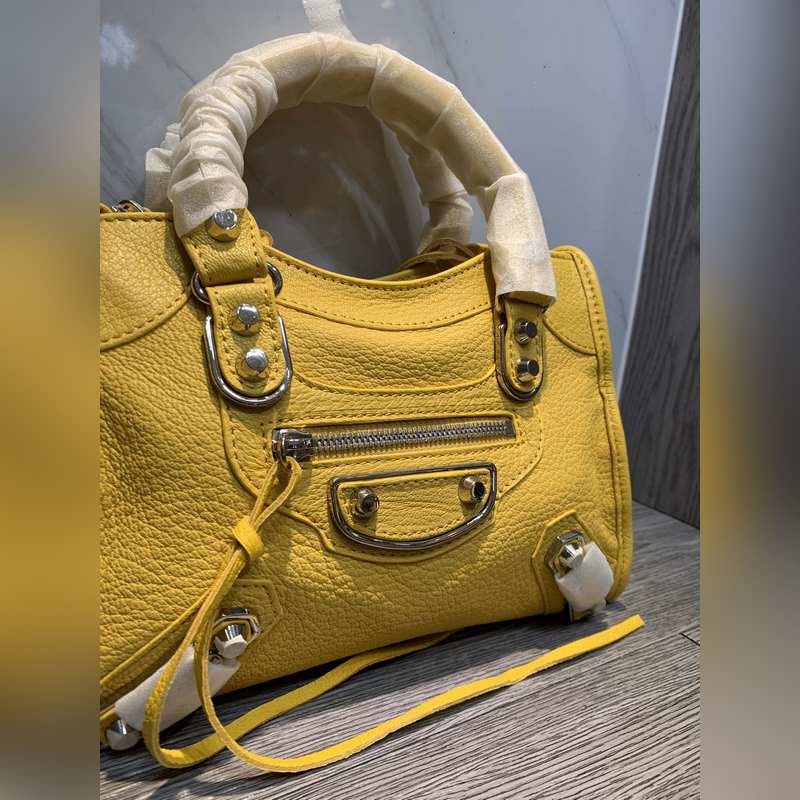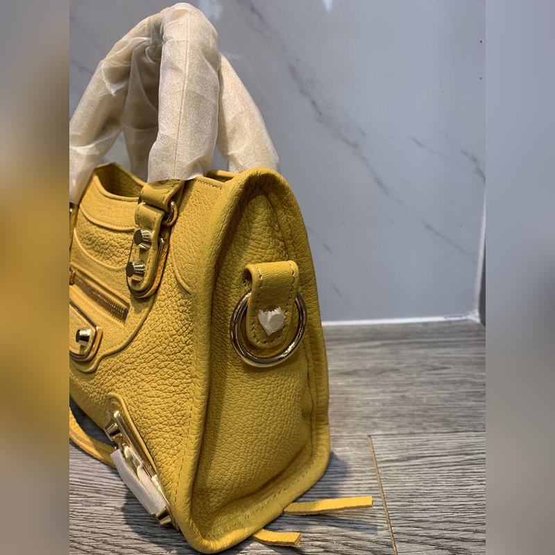 발렌시아가 염소 가죽 오토바이 가방 작은 노란색 은색 스터드 크기 24