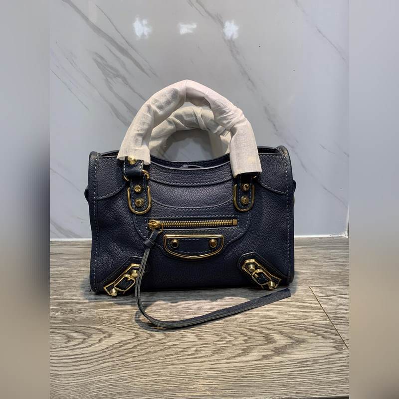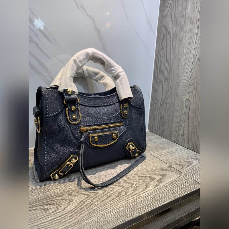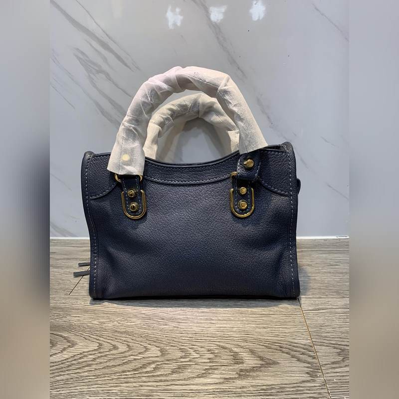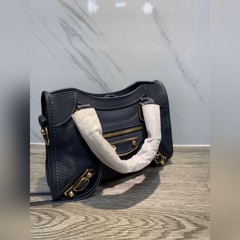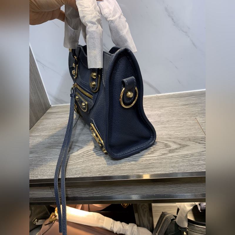 발렌시아가 염소 가죽 오토바이 가방 소형 로얄 블루 금색 스터드