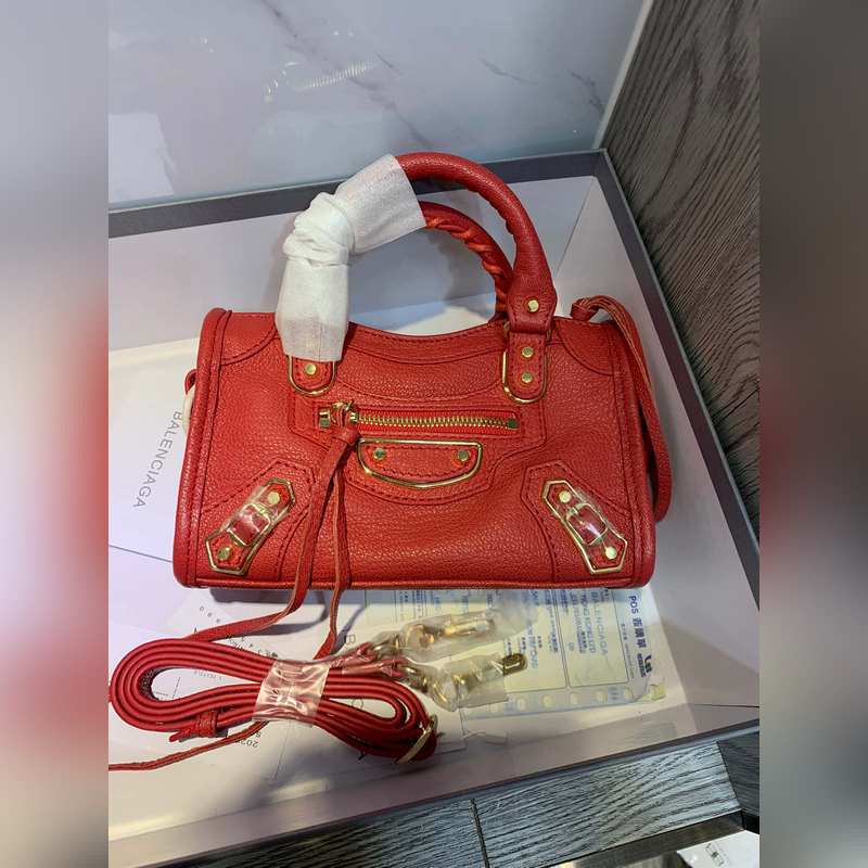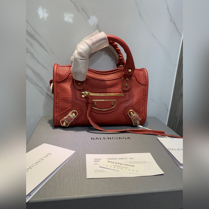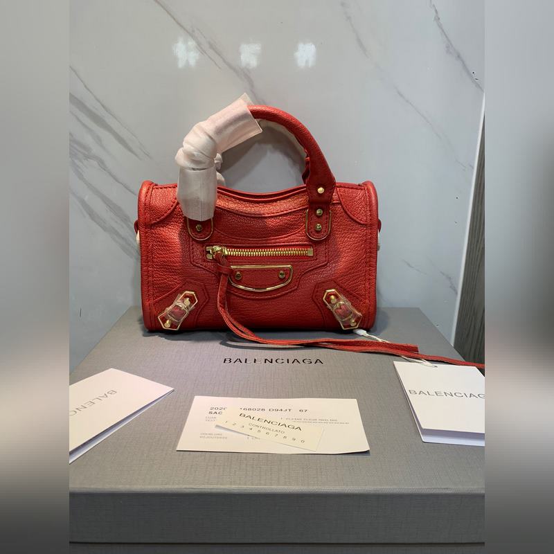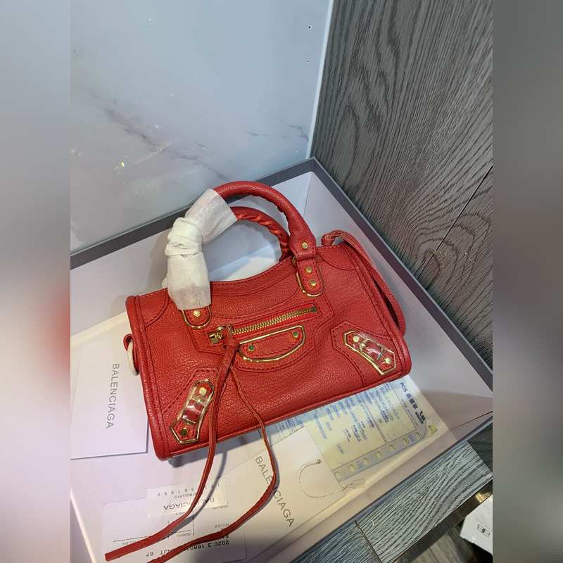 발렌시아가 염소 가죽 바이커 백 빨간색 미니 나노 20.5cm 크기