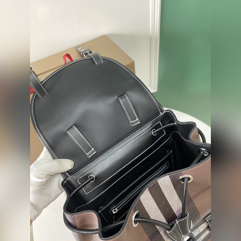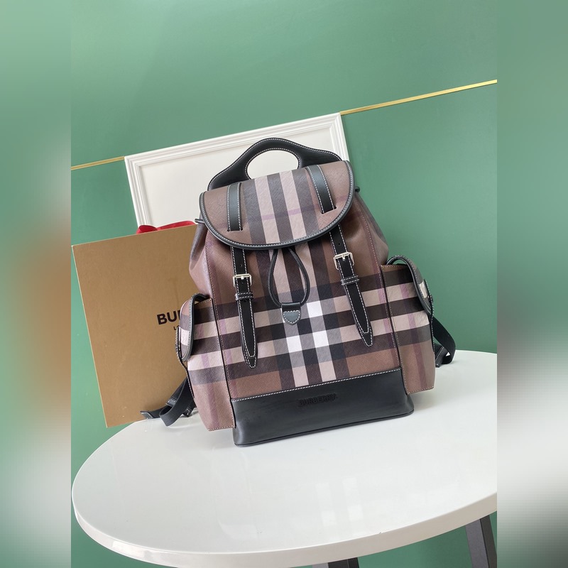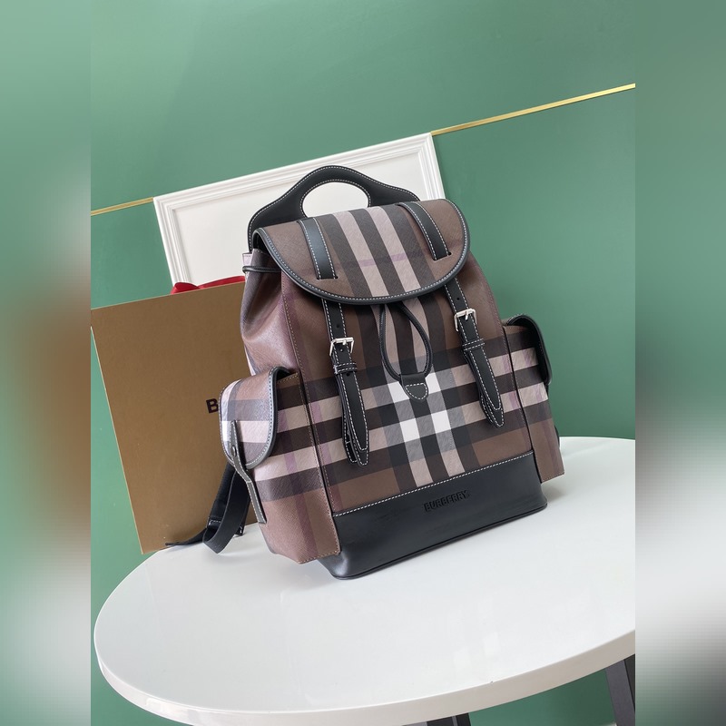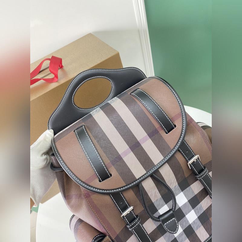 버버리 버치 브라운 체크 백팩은 새로운 체크무늬의 친환경 캔버스로 만들어