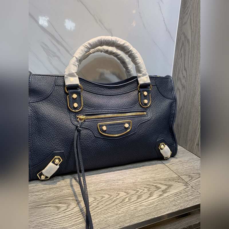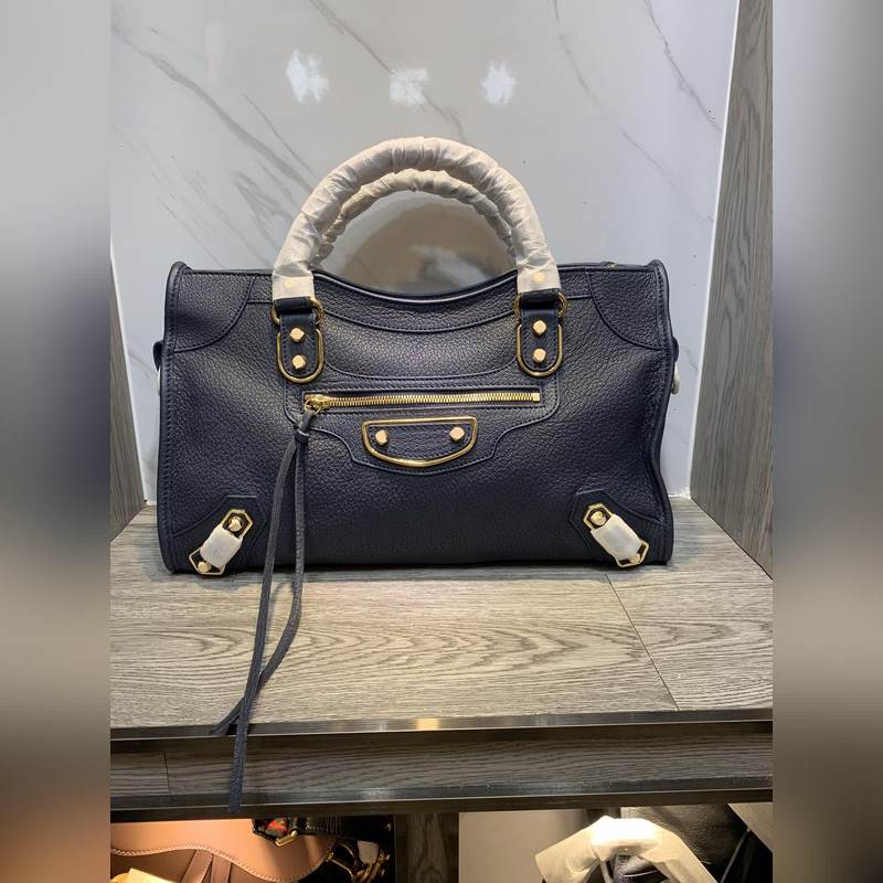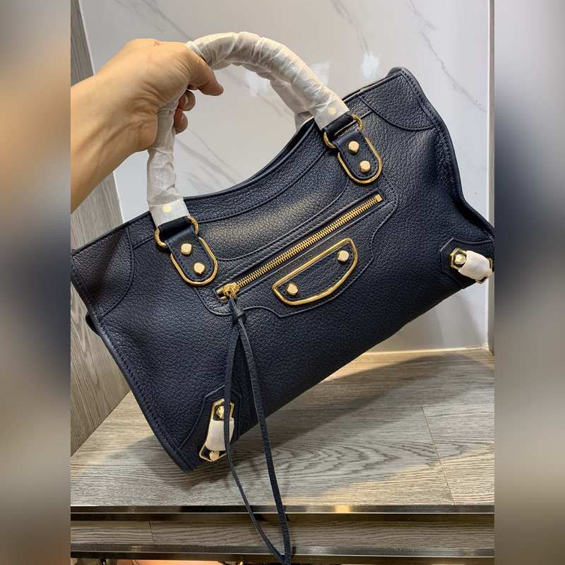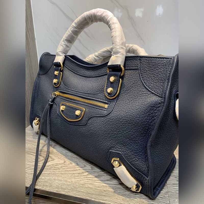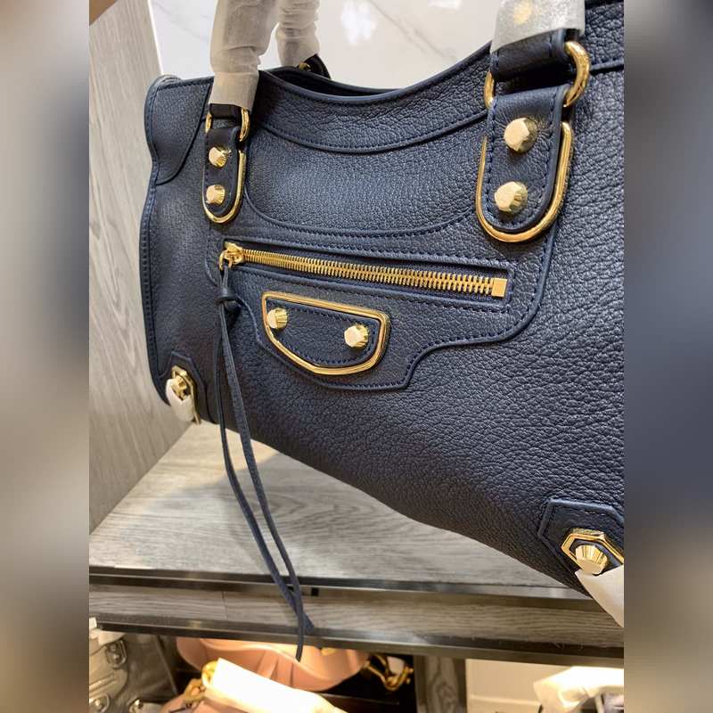 발렌시아가 염소 가죽 오토바이 가방 대형 로열 블루 금 스터드