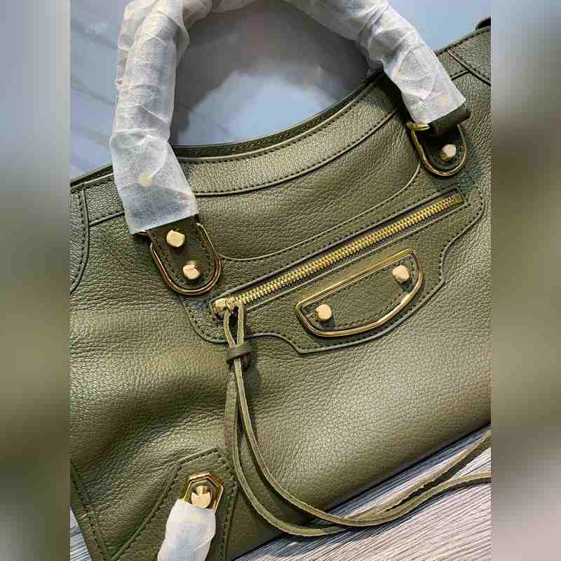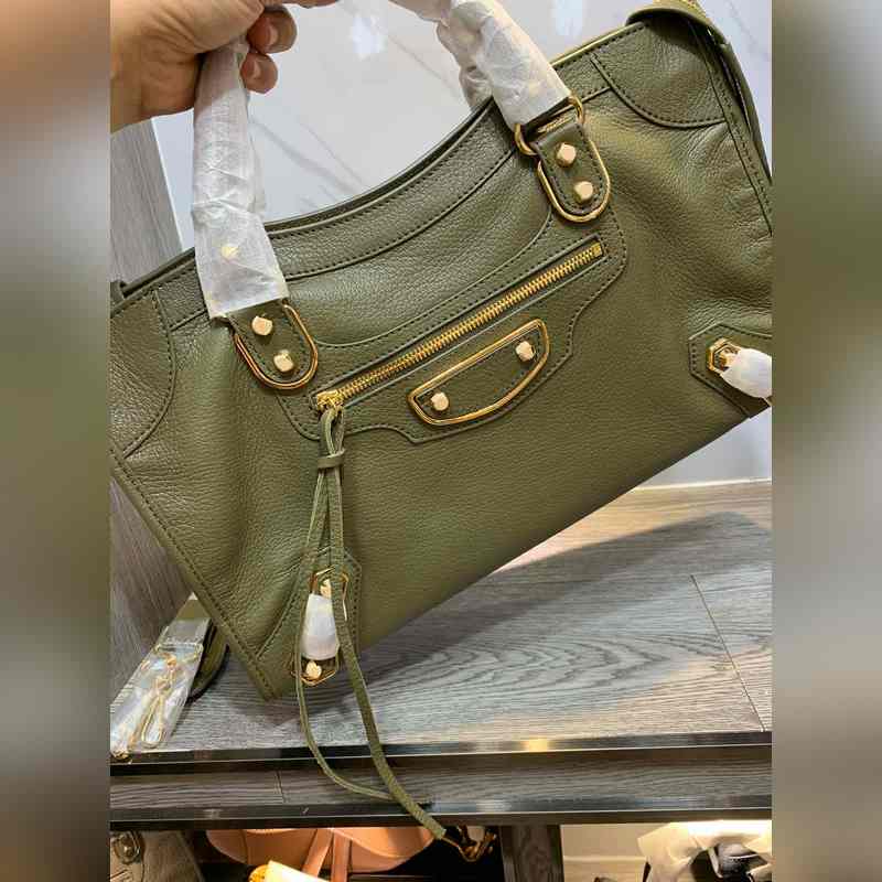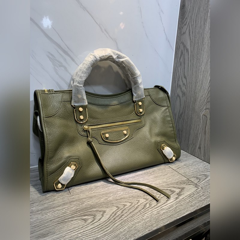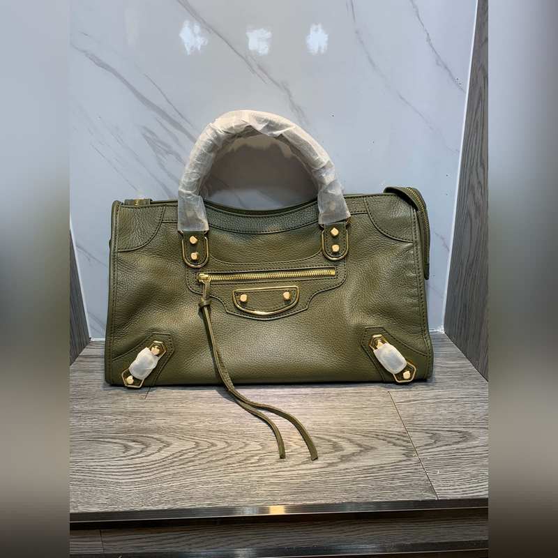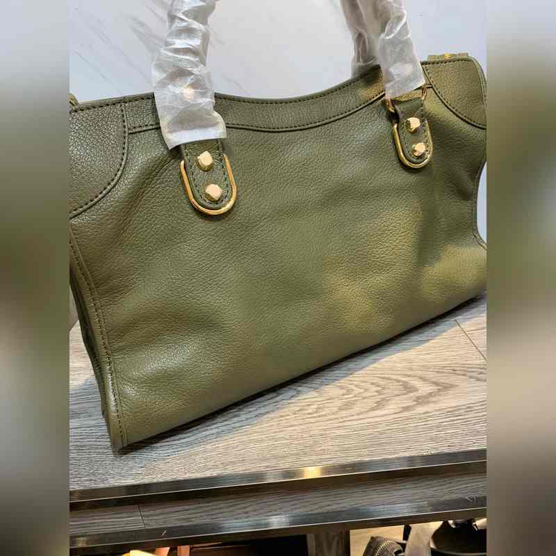 발렌시아가 염소 가죽 오토바이 가방 짙은 녹색 대형 38cm 크