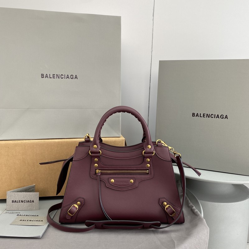 발렌시아가 [미디엄 사이즈 플레인 와인 레드] 가을과 겨울에 어울리