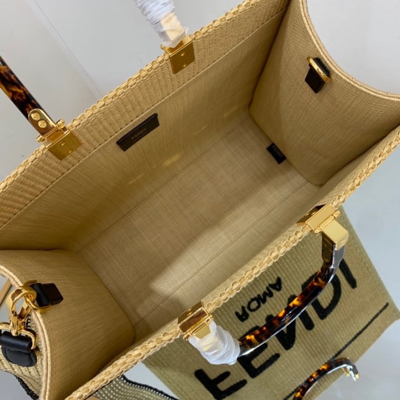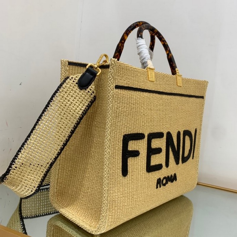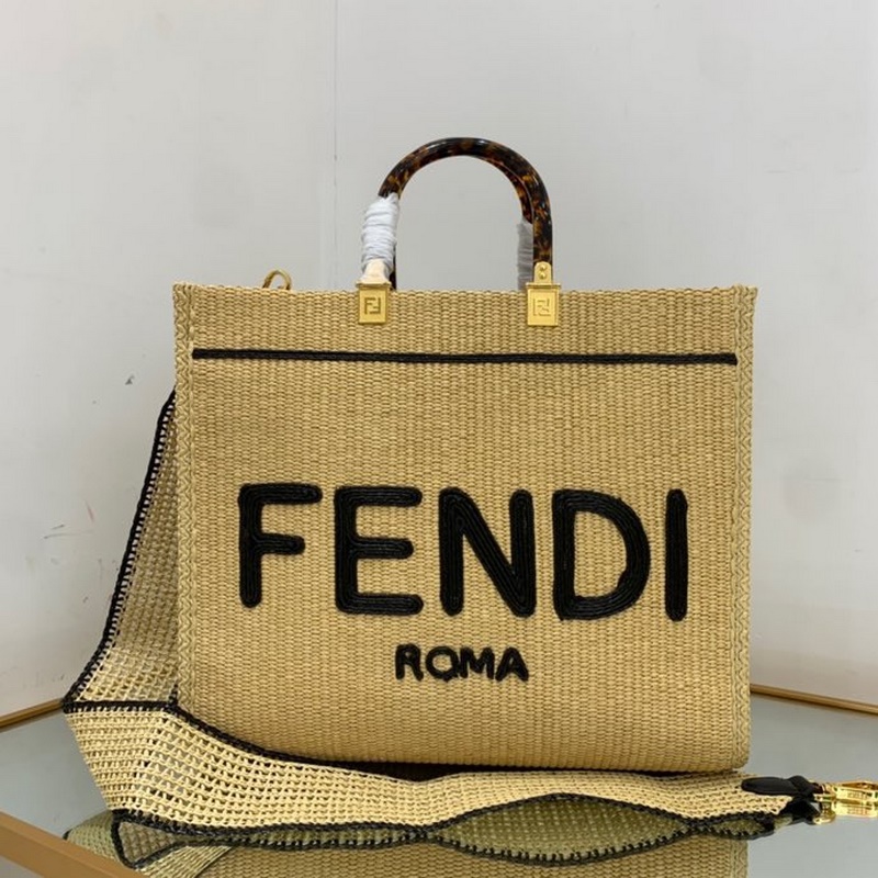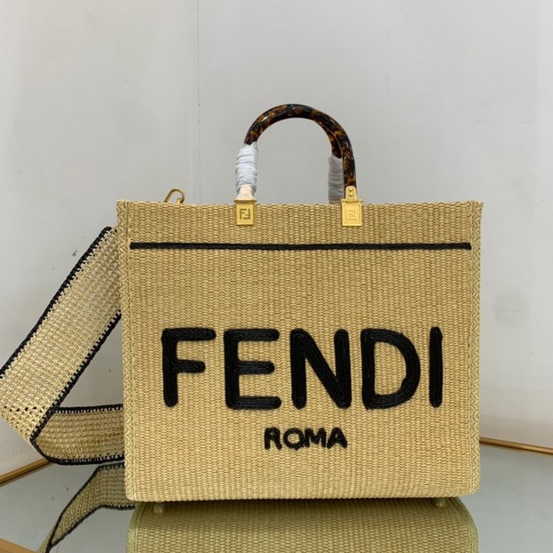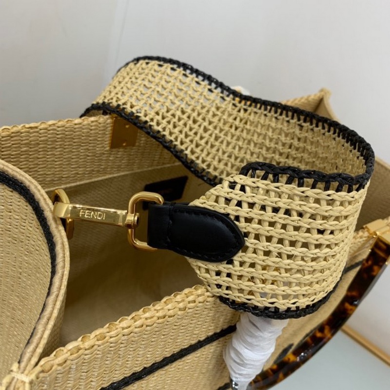 펜디 검정 라피아 핸드백 라피아로 손으로 짠 토트백 휴가 분위기가 가득