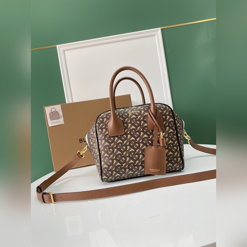 버버리 패션쇼 볼링 가방 큐브 - 큐브 가방 새로운 투톤 가죽 패치워
