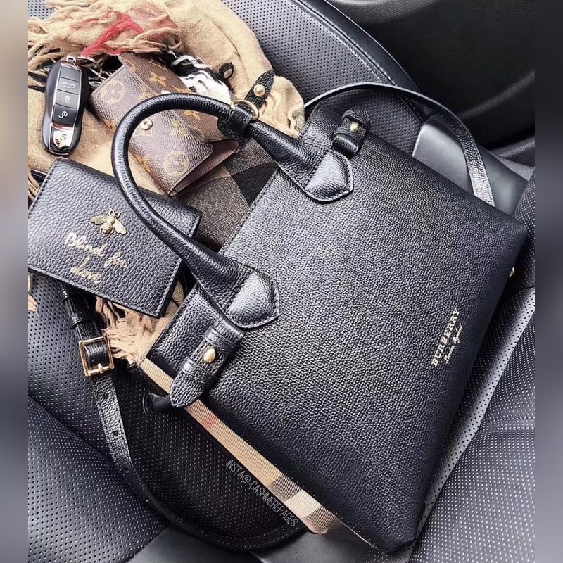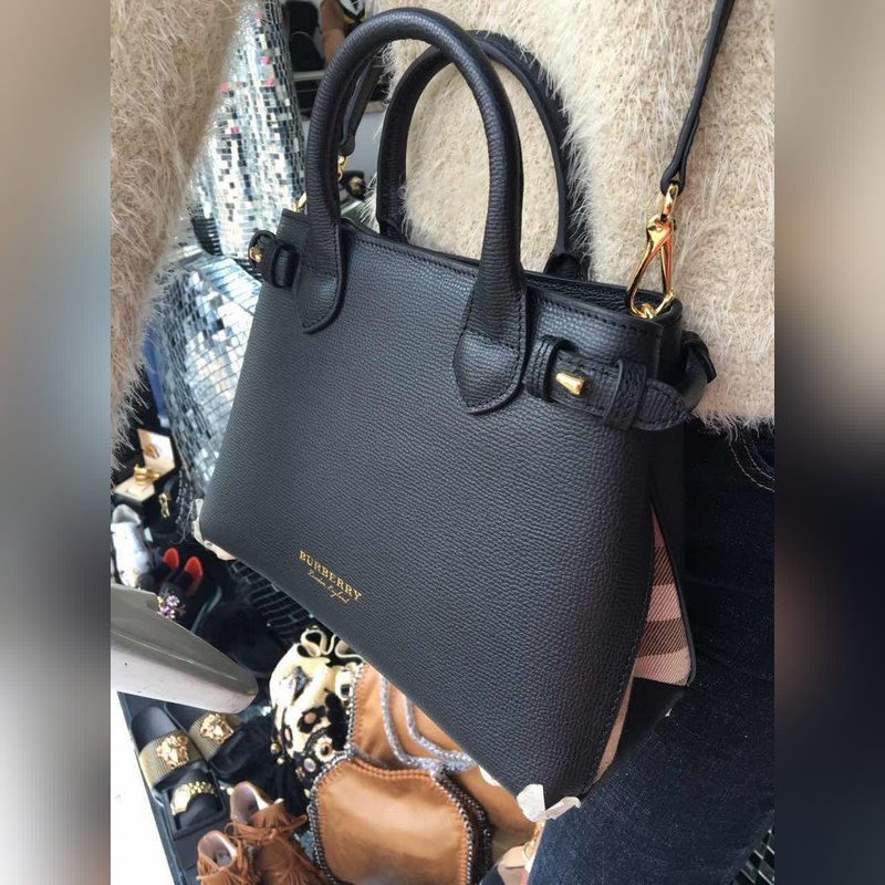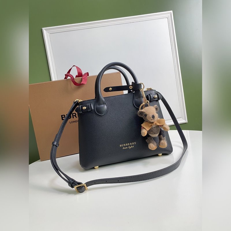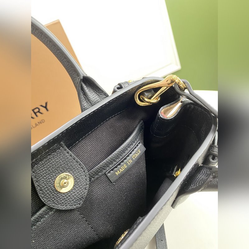 버버리 블랙 7131 배너 토트 백 하우스 체크 및 가죽 토트 백 엄