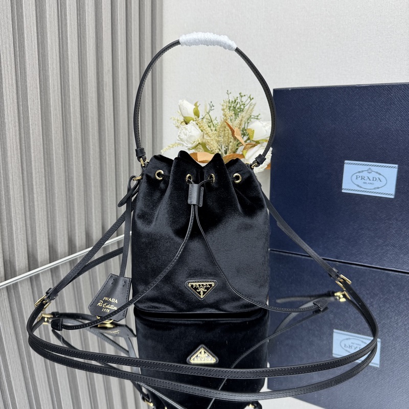 【프리미엄 원단】 신상 단독 실크 벨벳 1BE067 입고 이 실크 벨벳 소재의 미니 핸드백은 부드럽고 세련된 디자인을 강조합니다. 세련된 디자인에 조절 가능하고 분리 가능한 가죽 숄더 스트랩이 특징입니다. 최대 길이 108cm - 최소 길이 92cm. 나파 가죽 디테일과 금색 톤의 금속 액세서리가 고급스러움을 더하며 에나멜 처리된 삼각형 금속 로고가 클래식한 분위기를 강조합니다. 크기/19.5x15.5x10cm