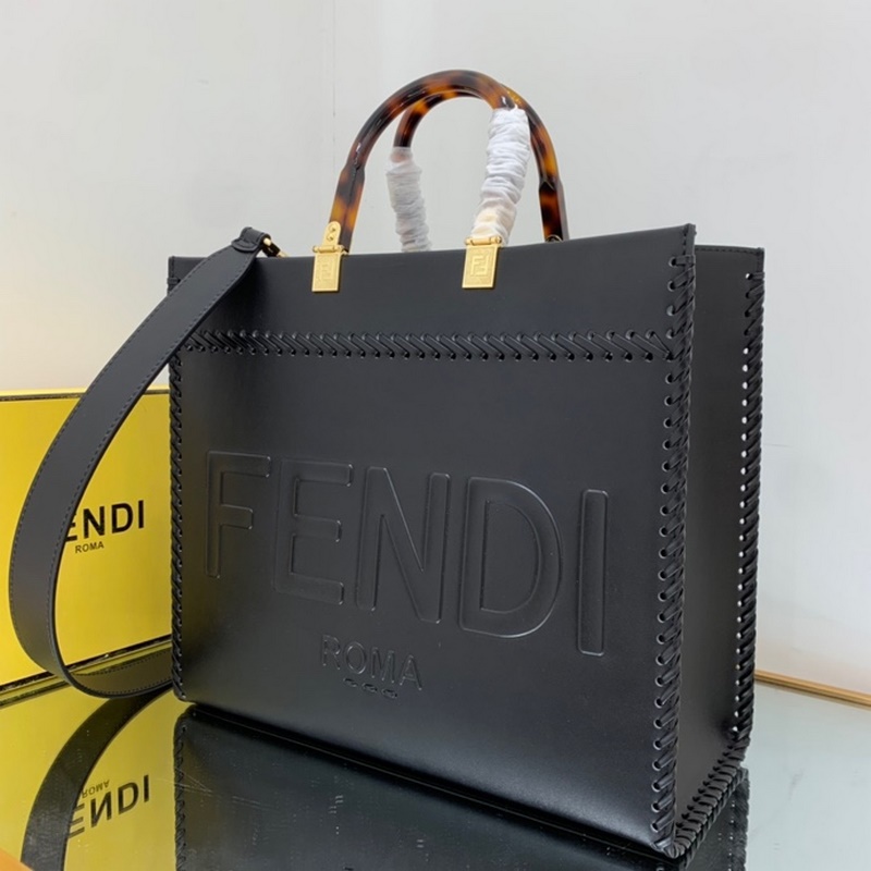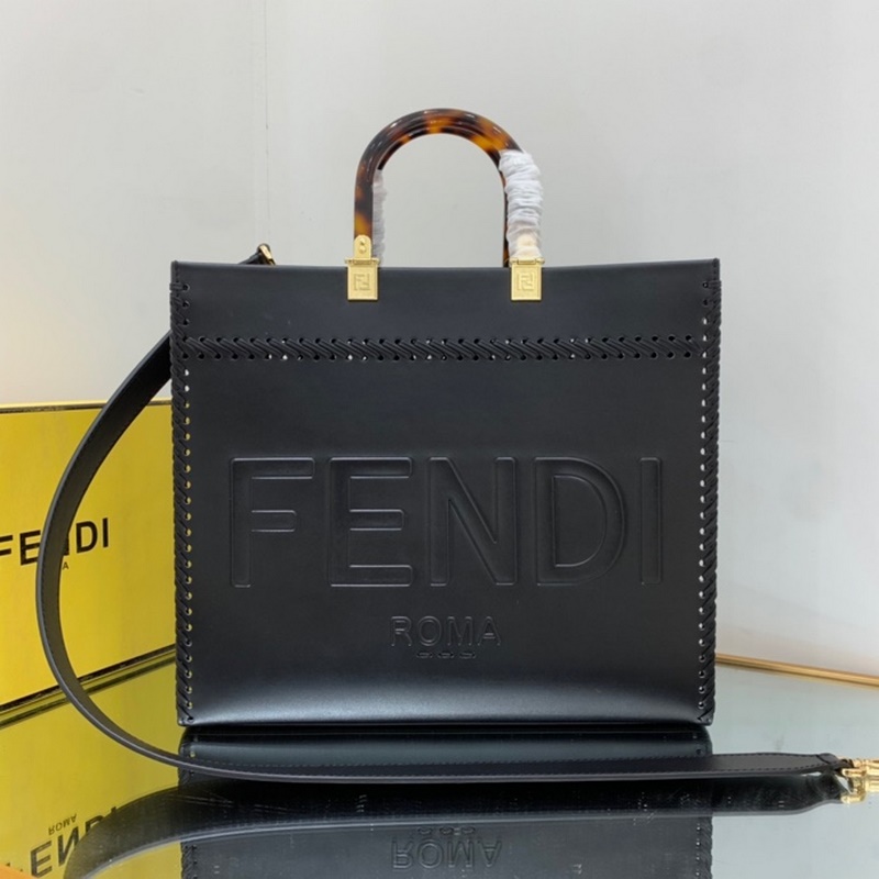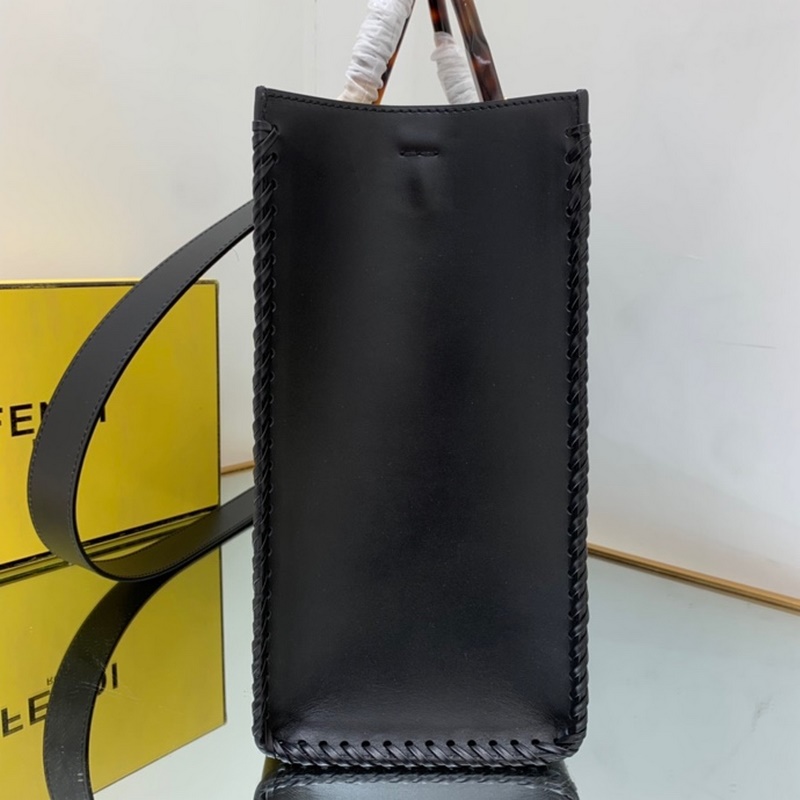 펜디 검은색 중간 크기 사이즈의 가죽 끈 토트백 Sunshine H