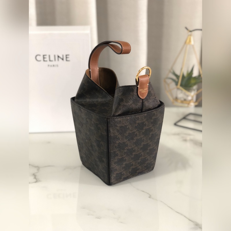셀린느 소가죽 트림 패브릭 안감 핸드백 스냅 버튼 잠금 1개의 메인