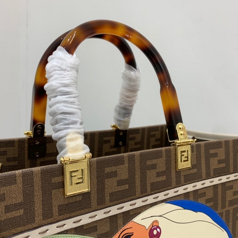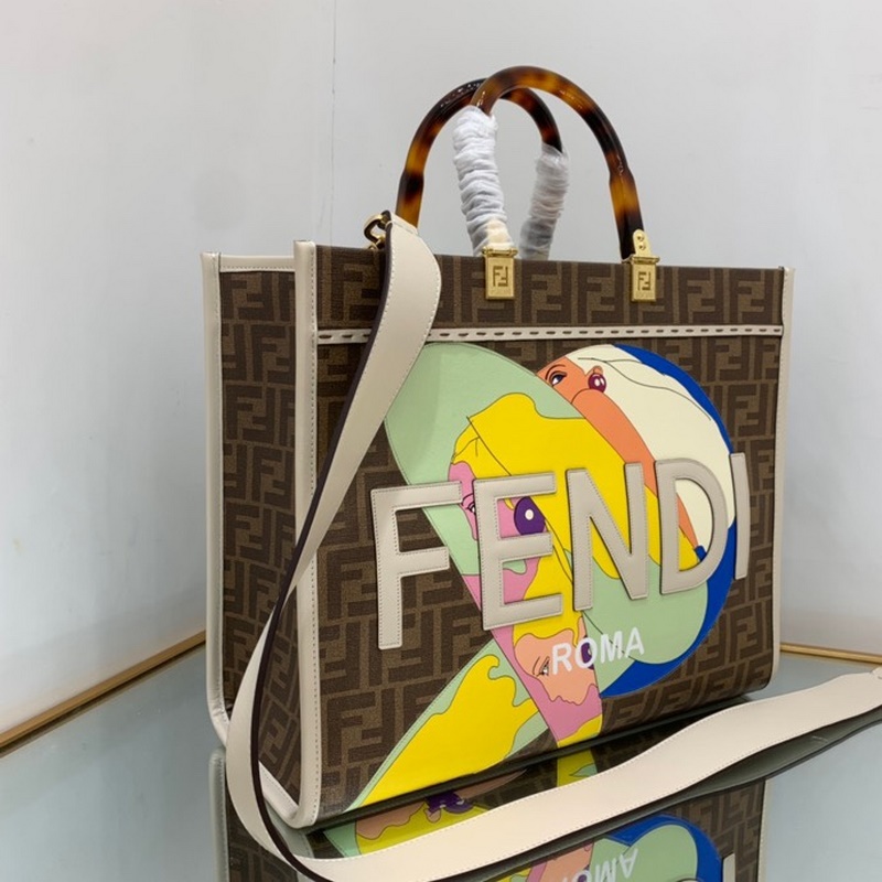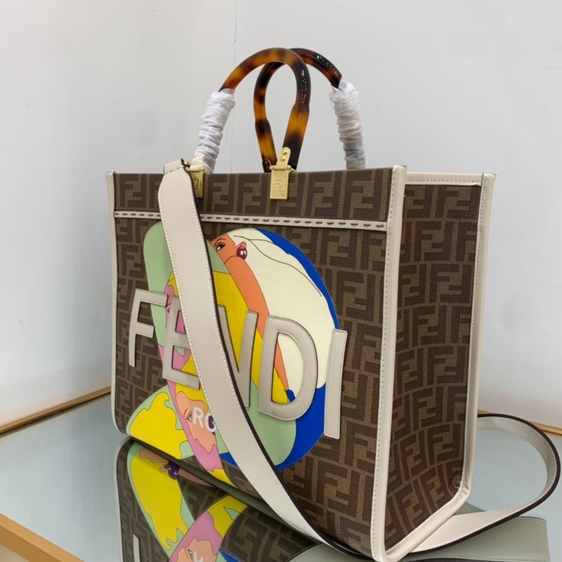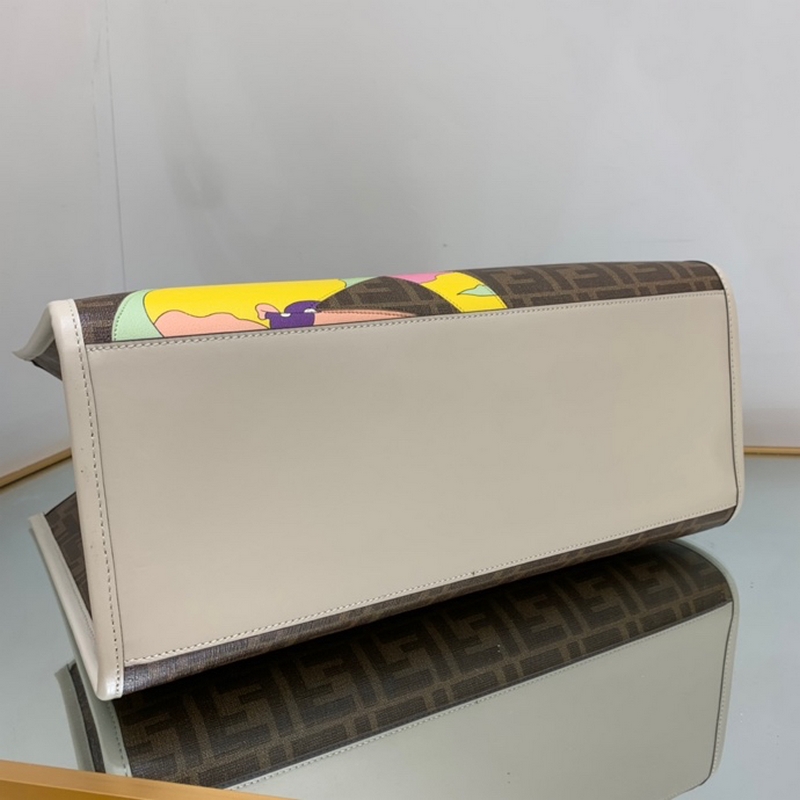 펜디 중간 크기의 크림색 유약 원단 핸드백 FF 모티프와 같은 색상 조