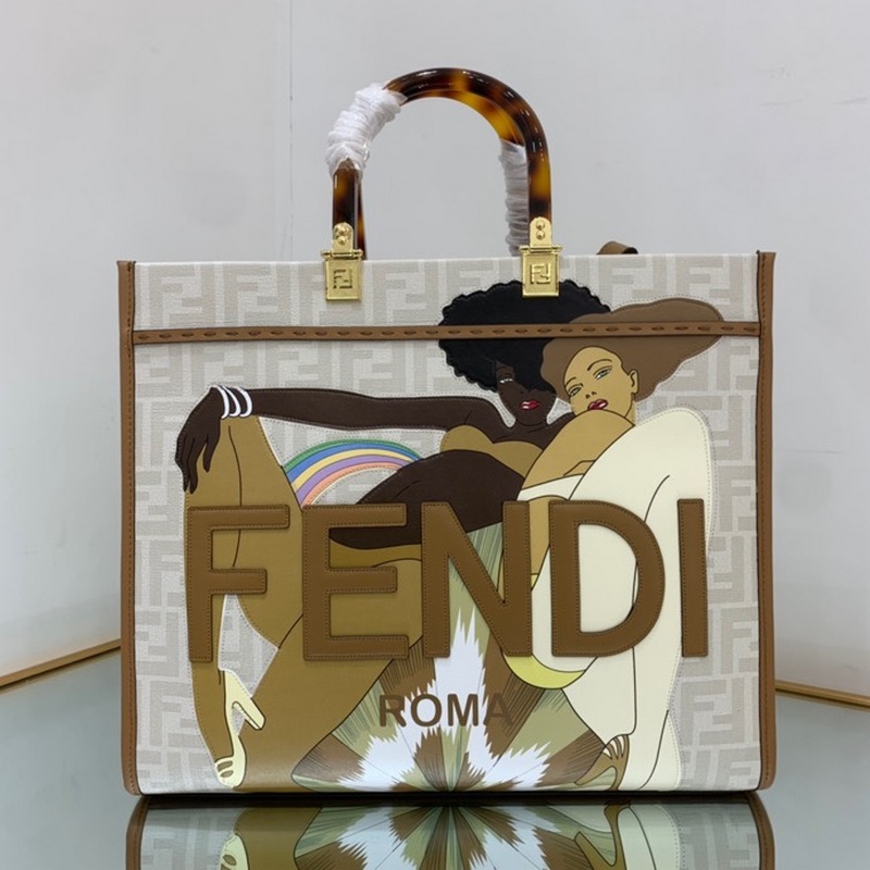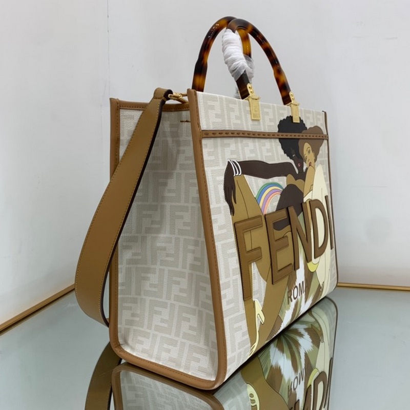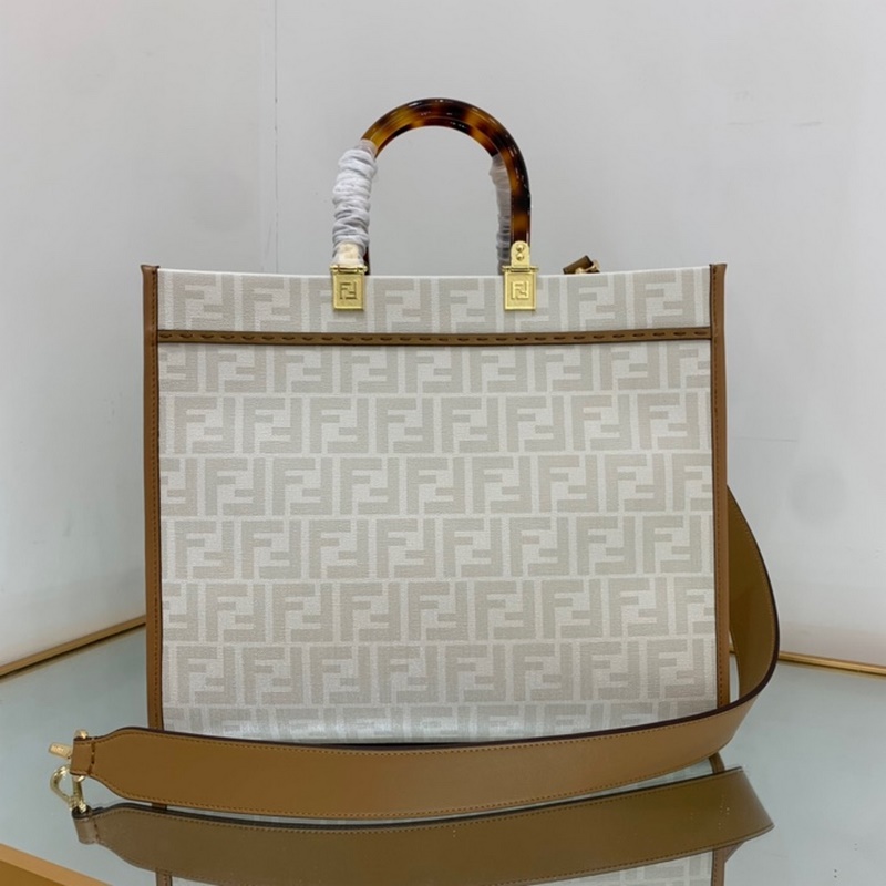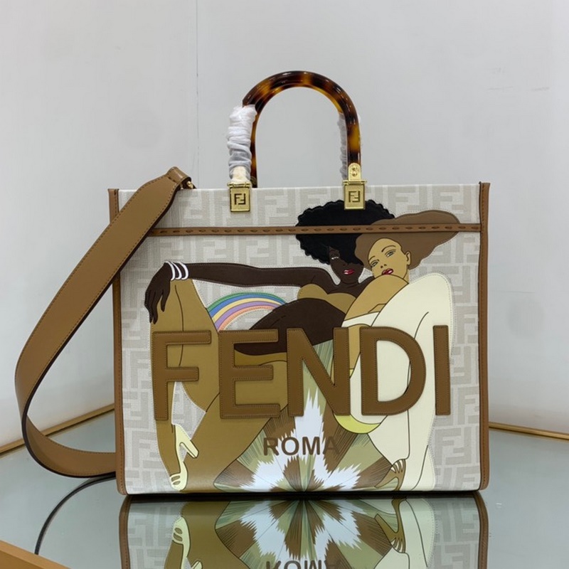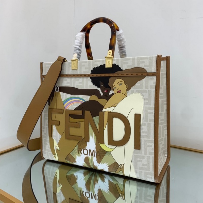 펜디 중간 크기의 갈색 유약 직물 핸드백 FF 모티프와 같은 색상 조합