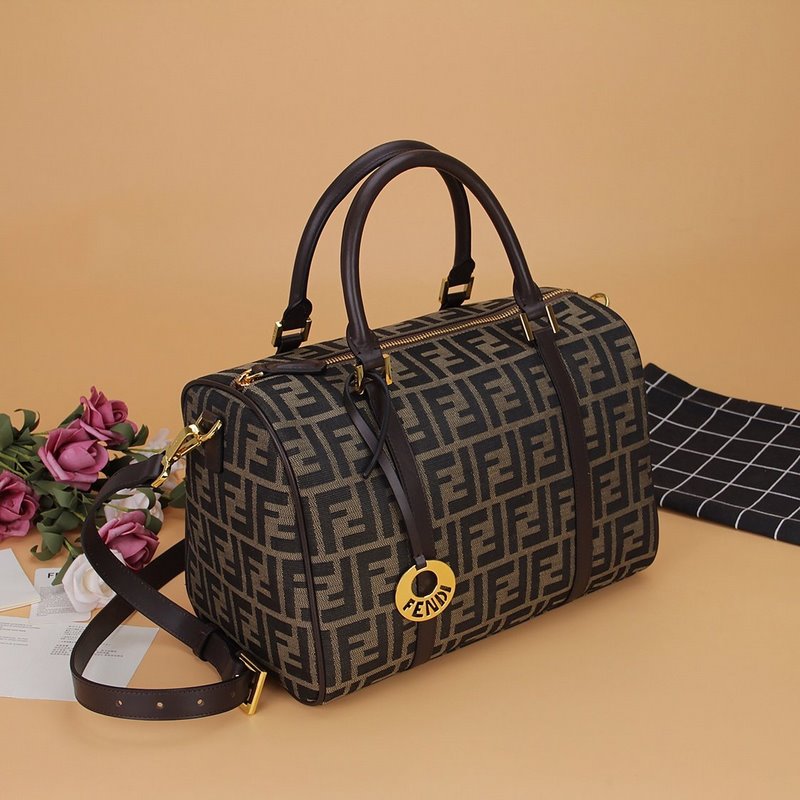펜디 펜디 패브릭 베갯잇 모델 6510 갈색 가죽 소재의 갈색 직물
