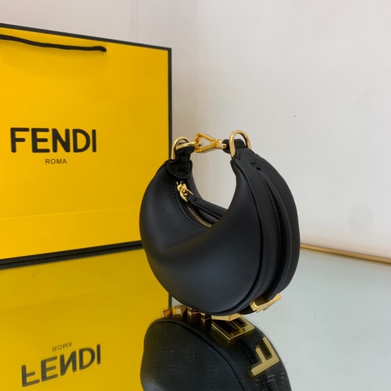 FENDI 크레센트 백 지퍼 잠금 골드 컬러의 빈티지한 금속 글자 클