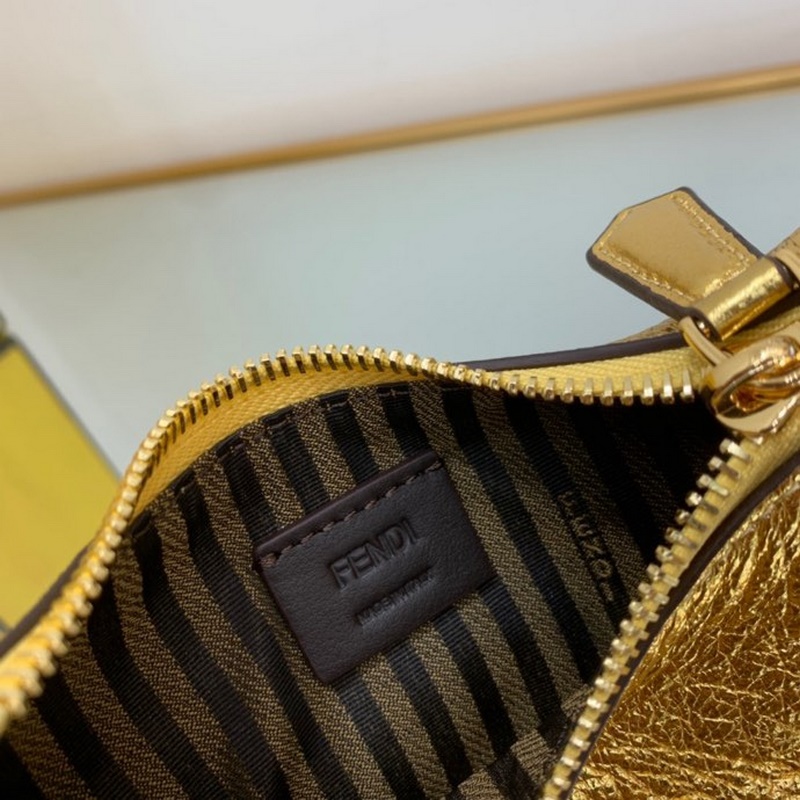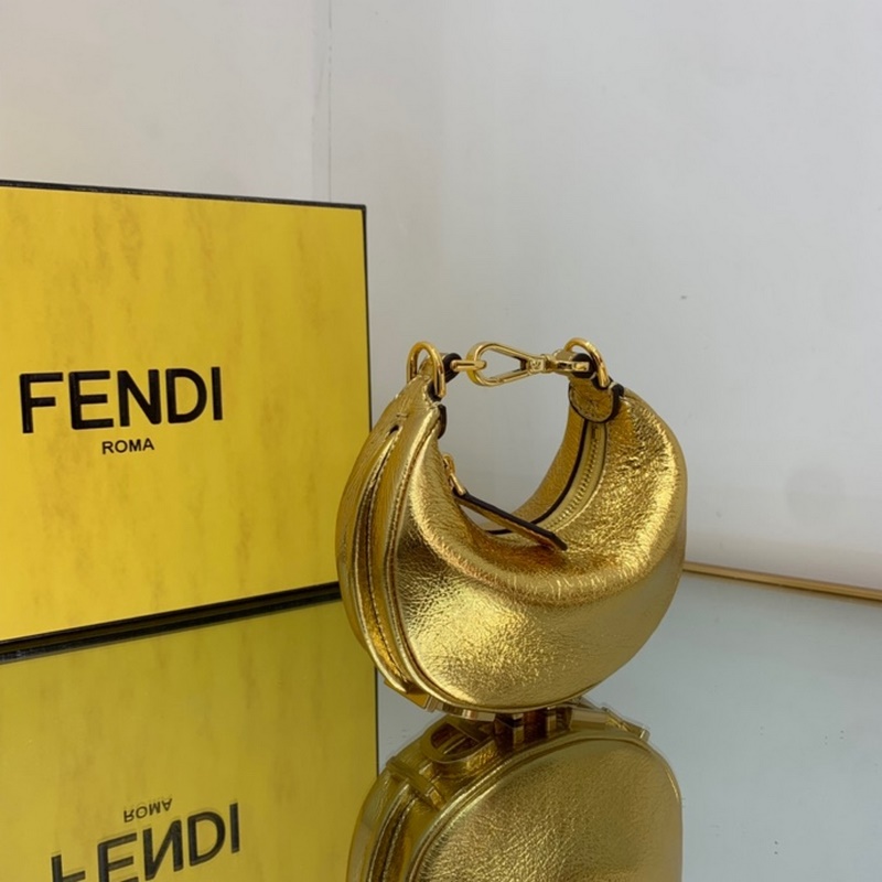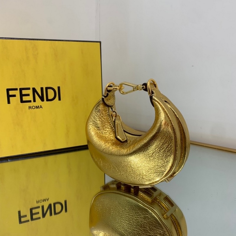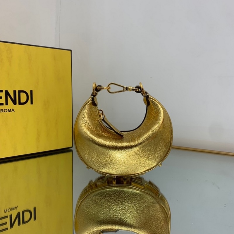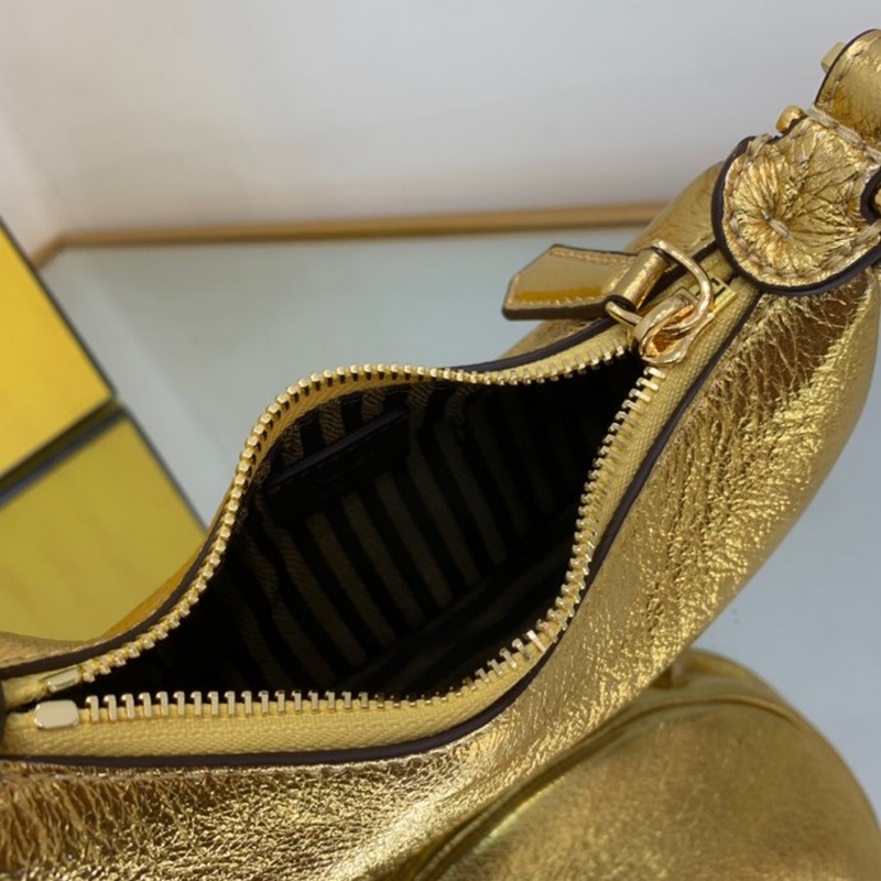 펜디 지퍼 달린 반달 가방 빈티지 골드 컬러의 금속 글자 조절 가능한