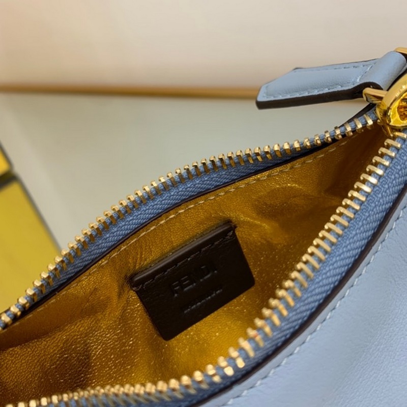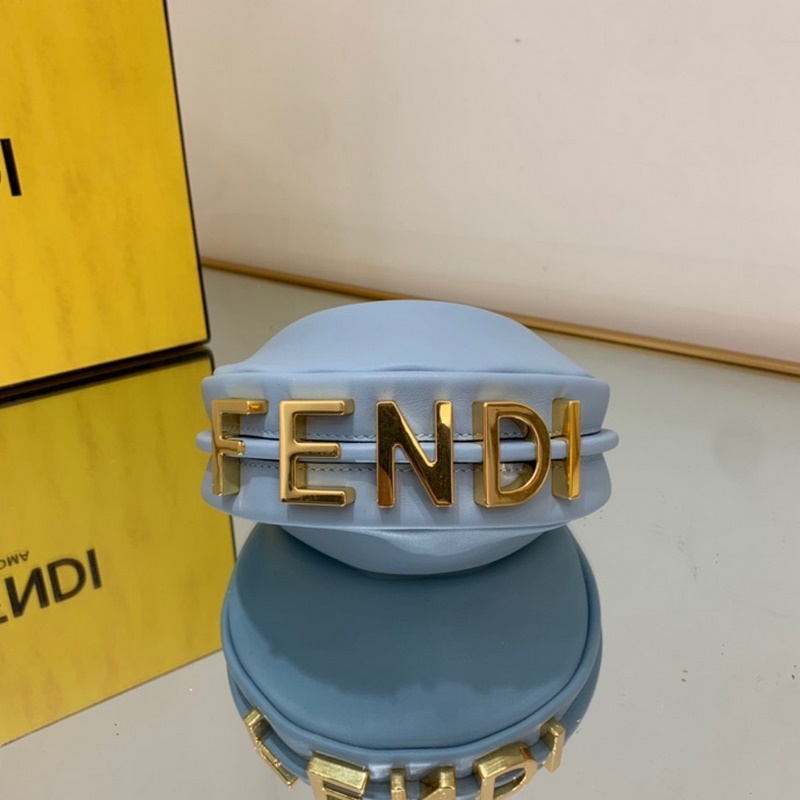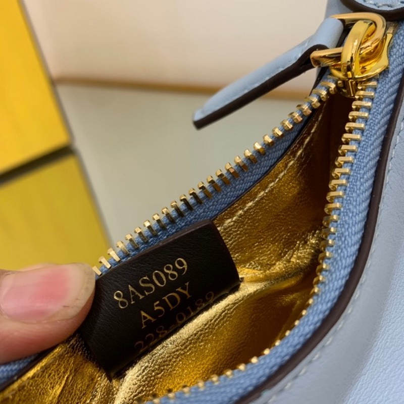 펜디 지퍼 달린 반달 가방 빈티지 골드 컬러의 금속 글자 조절 가능한