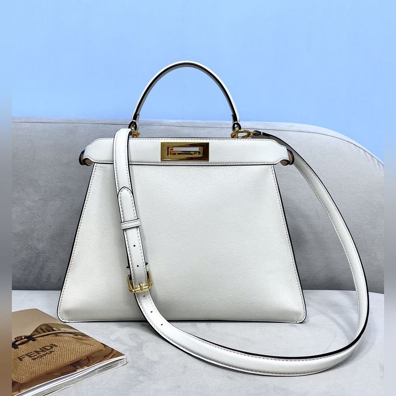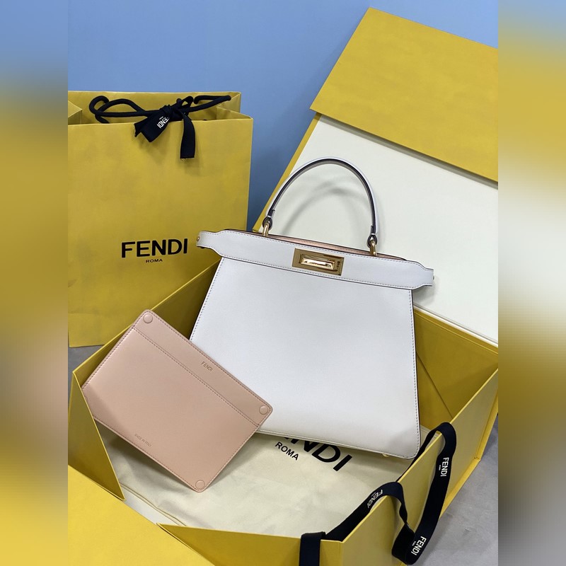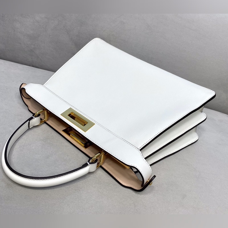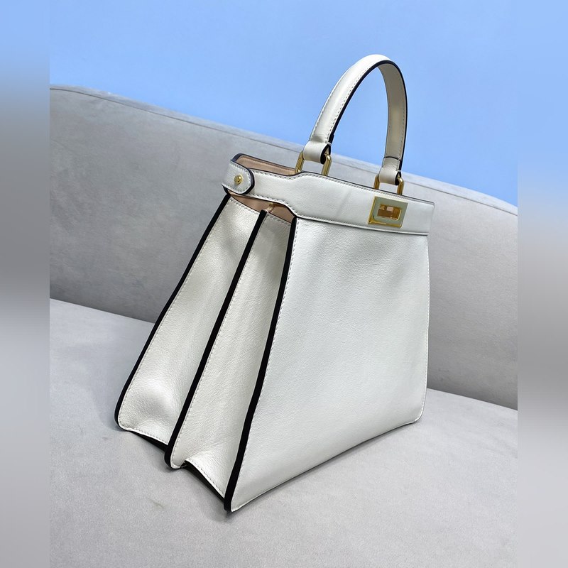 펜디 대형 33cm 중형 핸드백 사다리꼴 실루엣과 사각형 트위스트 락