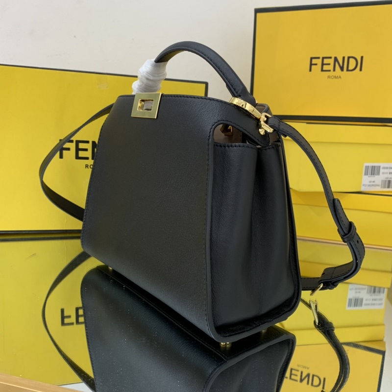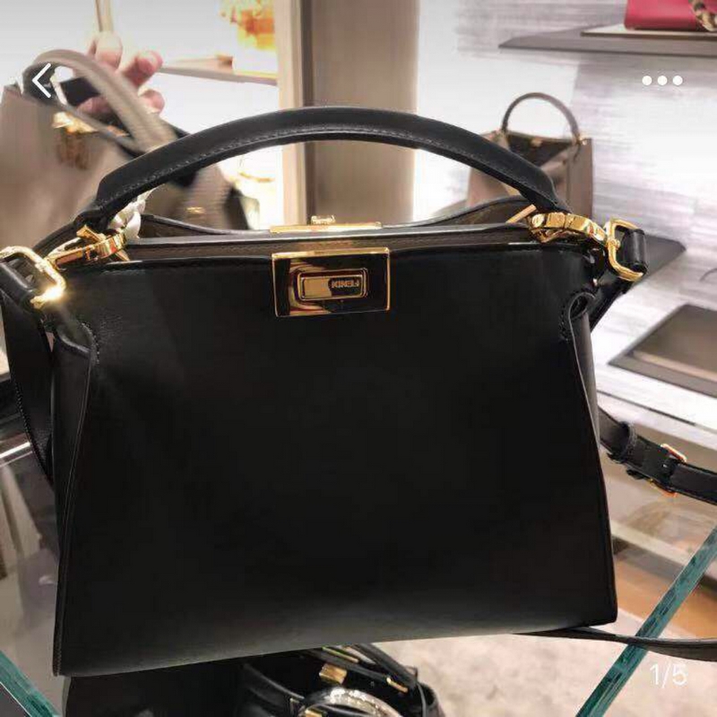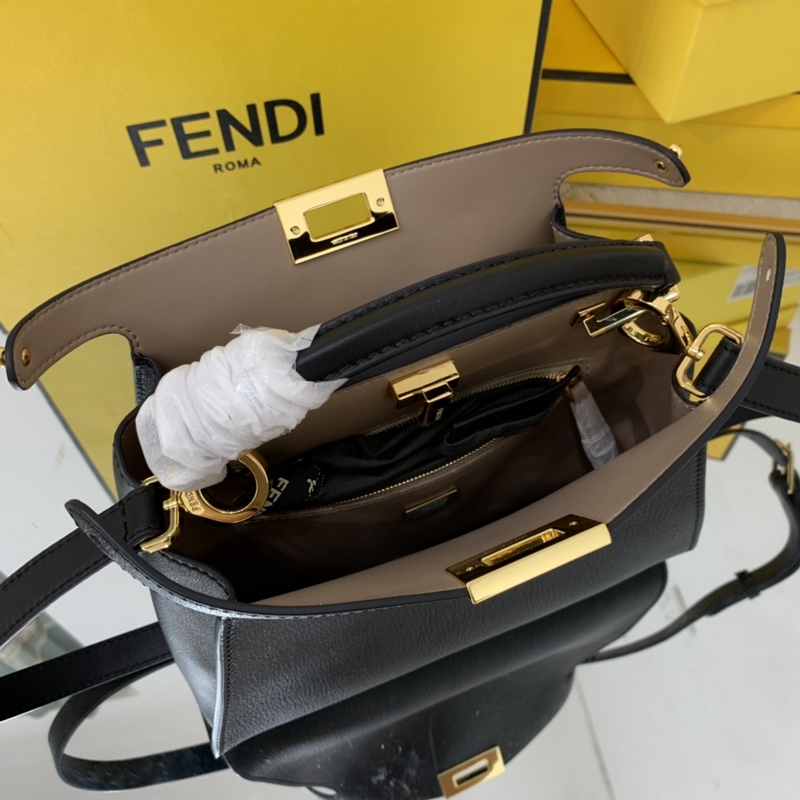 펜디 중형 핸드백 단단한 칸막이로 분리된 두 개의 칸 측면에 턴락 잠금