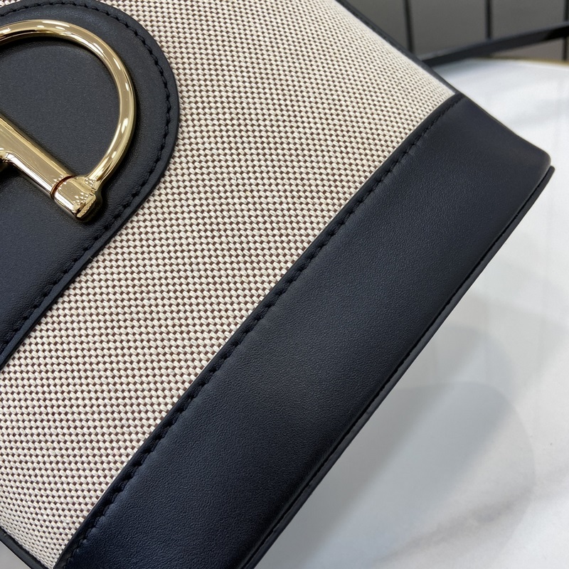 【신제품】 2025 봄/여름 컬렉션에서 Gucci 73은 동명의 연도에서 영감을 받은 아카이브 탭 백을 재해석했습니다. 현대적인 말발굽 모양의 하드웨어 디자인을 특징으로 하며 크로스바디 단일 어깨 스트랩 또는 핸드백으로 사용할 수 있습니다. 천연 캔버스 검은색 가죽 장식 금색 톤 대형 반 말발굽 금속 부품 갈색 면마 소재 라이닝 내부: 지퍼 포켓 1개 어깨 끈 (19cm 높이) 분리 가능한 추가 끈 (50cm 높이) 자석 버튼 개폐식 모델 번호: 833665. 크기: 18.5cm (너비) x 20cm (높이) x 8.5cm (깊이) 무게: 약 0.5kg. 이탈리아 디자인