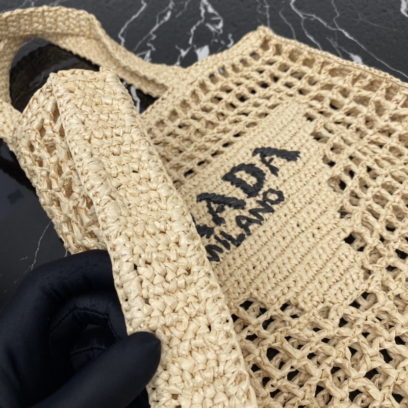 프라다 라피아 토트백 모델 번호 1BG393 이 부드러운 해체주의 토