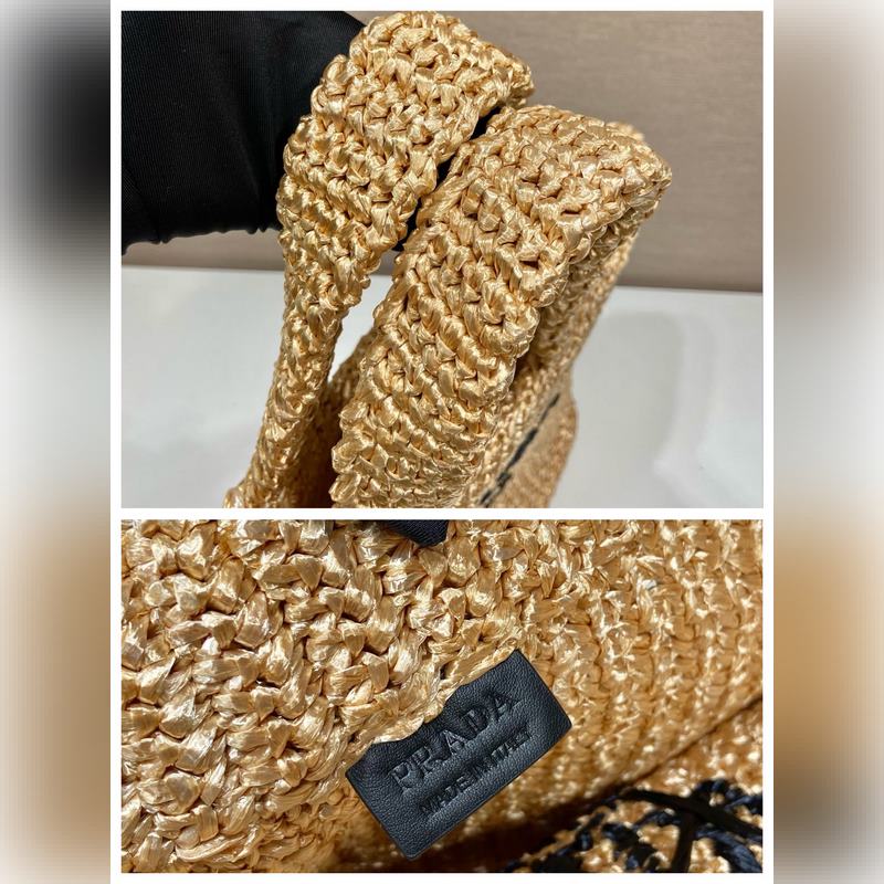 프라다 섬유 토트백 모델 번호: 1BG408 이 라피아 토트백은 수입