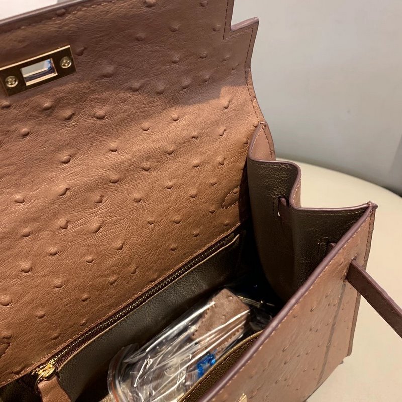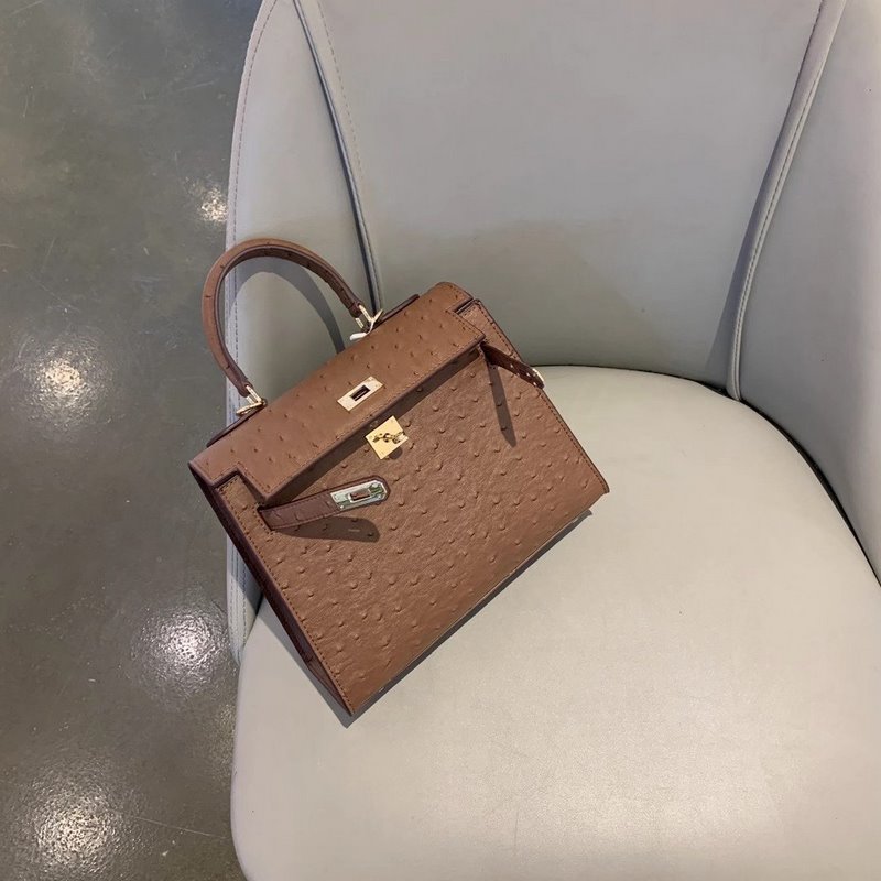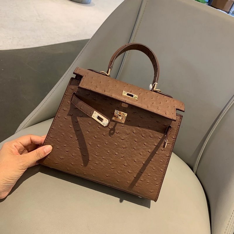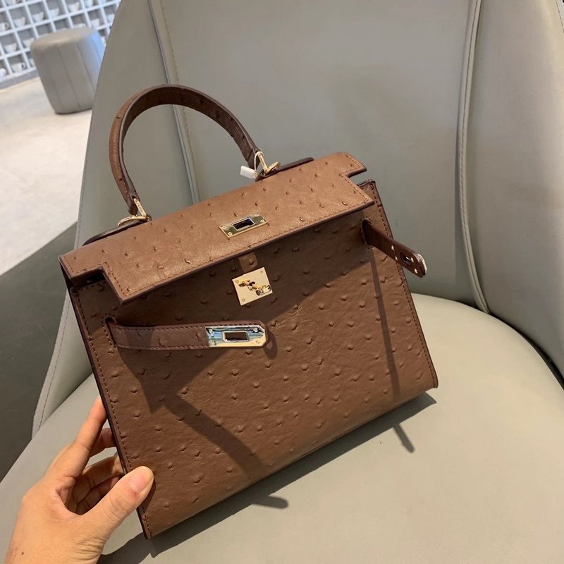 에르메스 켈리 타조 무늬 ~ 다크 브라운 크기: 25cm 품번: 020