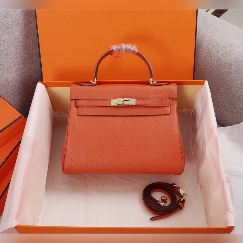 에르메스 오렌지 골드 버클 켈리 프린세스 백 3가지 사이즈 25cm
