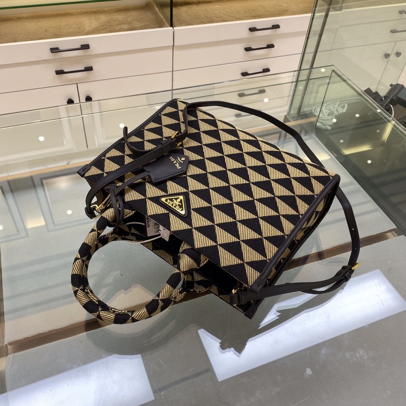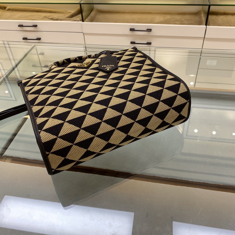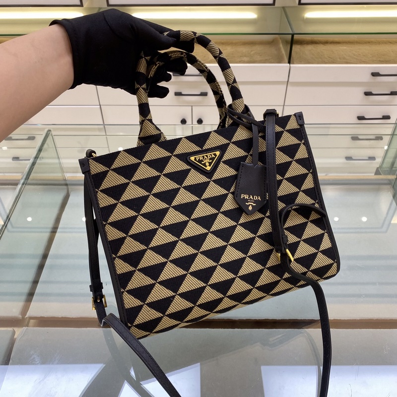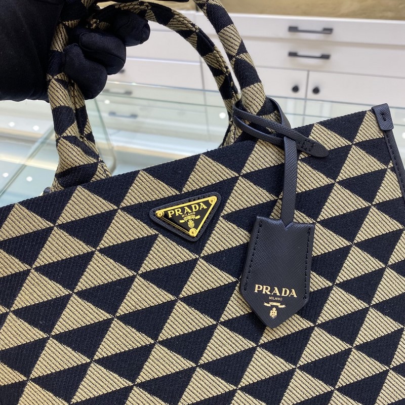 프라다 자수 패브릭 토트백 모델 번호: 1BA354 중간 사이즈 긴