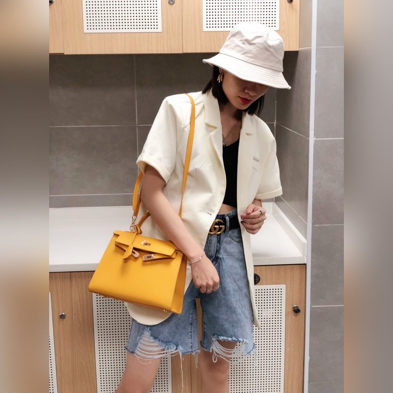 에르메스 켈리 25cm 28cm 팜 패턴의 엡섬 가죽 골드 버클 는