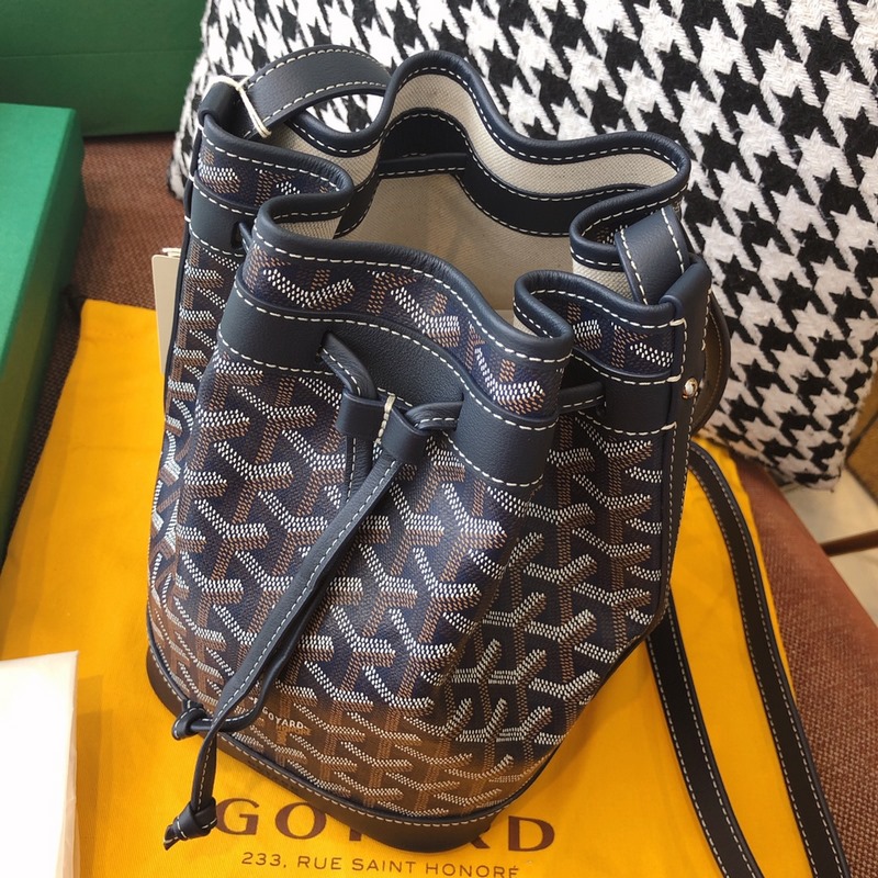 고야드 딥 블루 #한국 직구 버전 Goyard 고야드 신상 스트링 디자인 소형 버킷 백 단촘한 숄더 크로스백 남녀 공용 18.5cm 다양한 색상 선택 가능 클래식 컬러 조합 캔버스 소재에 은은한 향기 정교한 제작 기술 고전적인 패턴도 특히 내구성이 우수합니다.