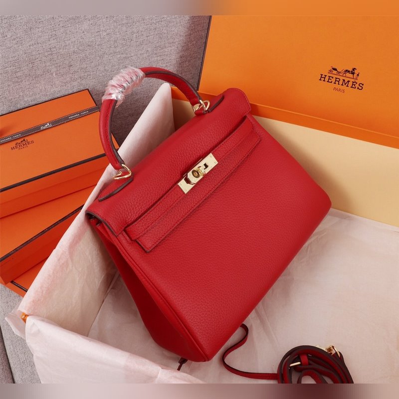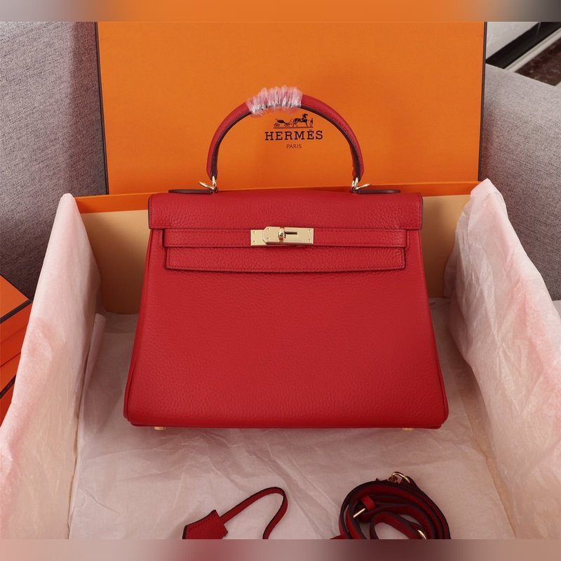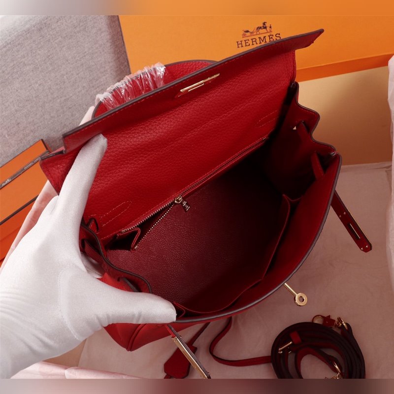 에르메스 빨간 금색 버클 켈리 프린세스 백 세 가지 사이즈 25cm 28