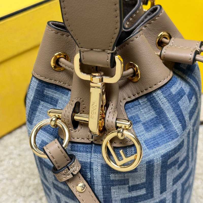 미니 물통 가방 연한 파란색 데님 소재에 이중 F 로고가 특징이며