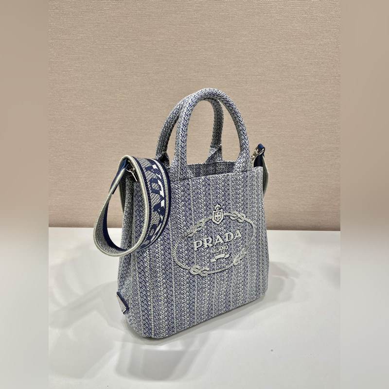 프라다 자수 토트백 모델: 1BA343 자수 소형/파랑 이 토트백은 수