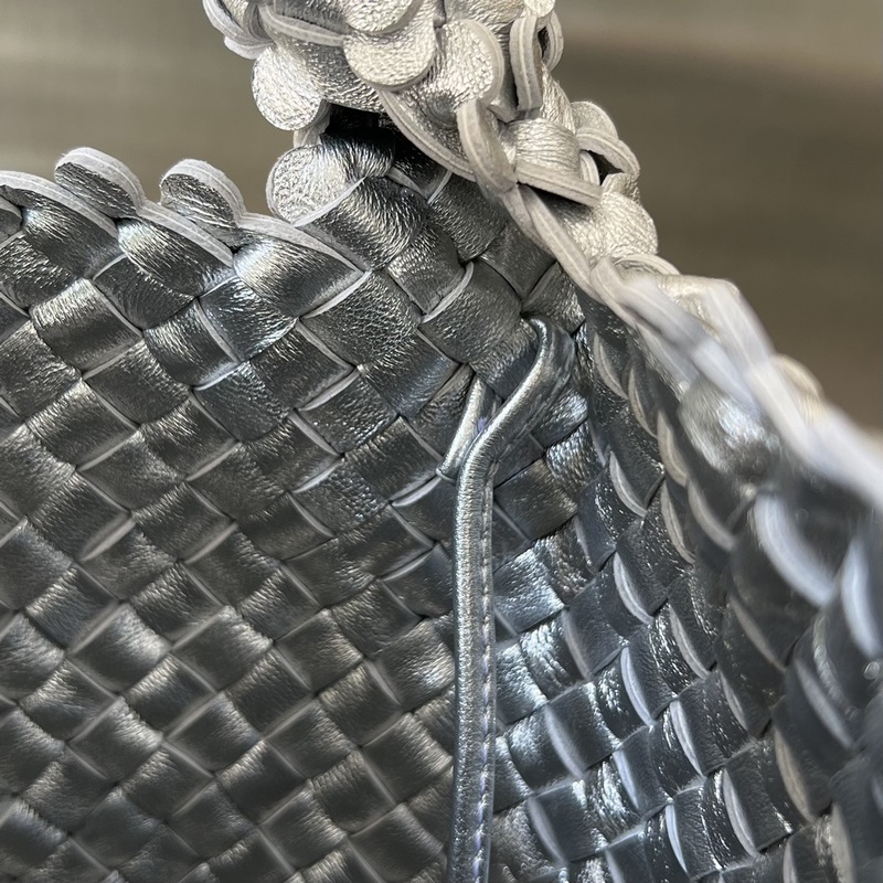 #Bv Cabat Bucket 꽃잎 물통 가방 762587 꽃잎 한 장 한 장을 조합해 입체감을 연출한 독특한 디자인 순수공예로 엮어 제작되었습니다. 세밀한 꽃잎 엮기 기술은 가방에 고급스러운 느낌을 더하며 더욱 생동감을 더해 간결하면서도 우아한 아름다움을 발산합니다. 부드럽고 섬세한 양가죽 소재로 제작되어 가벼우며 편안하며 고급스러움이 곳곳에서 느껴집니다. 내부에 작은 내장 포켓이 있어 실용적이고 수납이 편리하며 색상 조합은 시원하고 깔끔합니다. 착용 시 젊어 보이는 효과와 스타일링에 완벽한 아이템입니다! 크기: 26×21×13cm