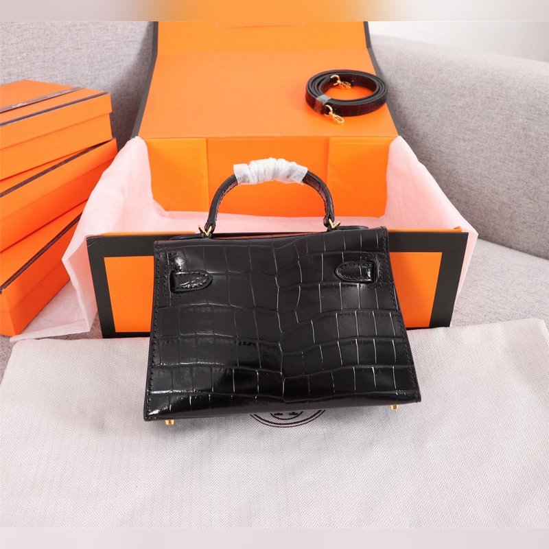 Herm?s 2세대 악어 무늬 퍼펙트 미니 켈리 2세대 맞춤형 최고급 송