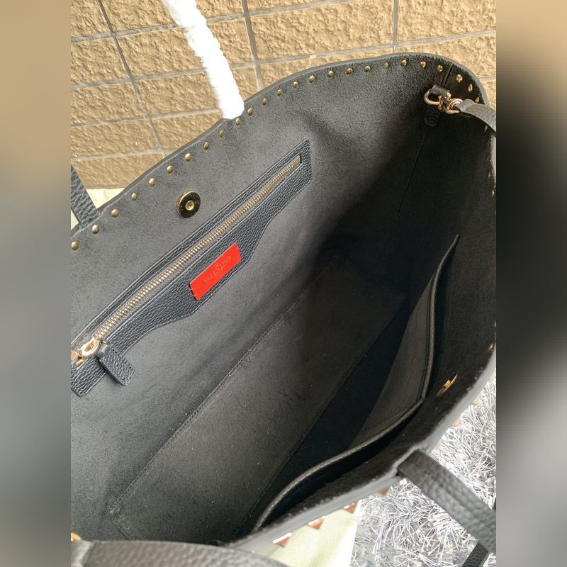 발렌티노 무스 프린트의 새로운 송아지 가죽 쇼핑백 플래티넘 마감 리벳으