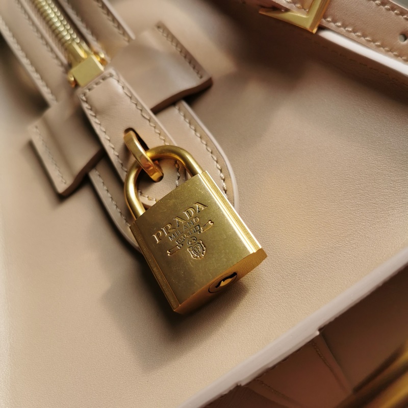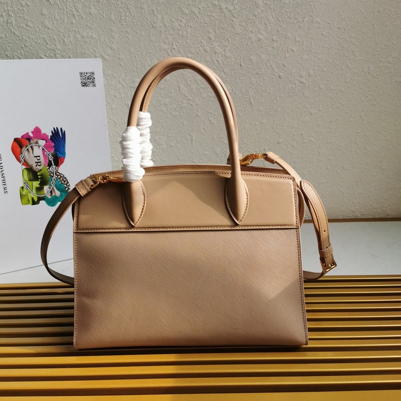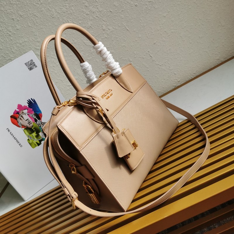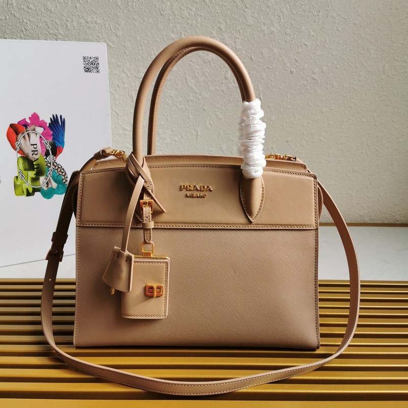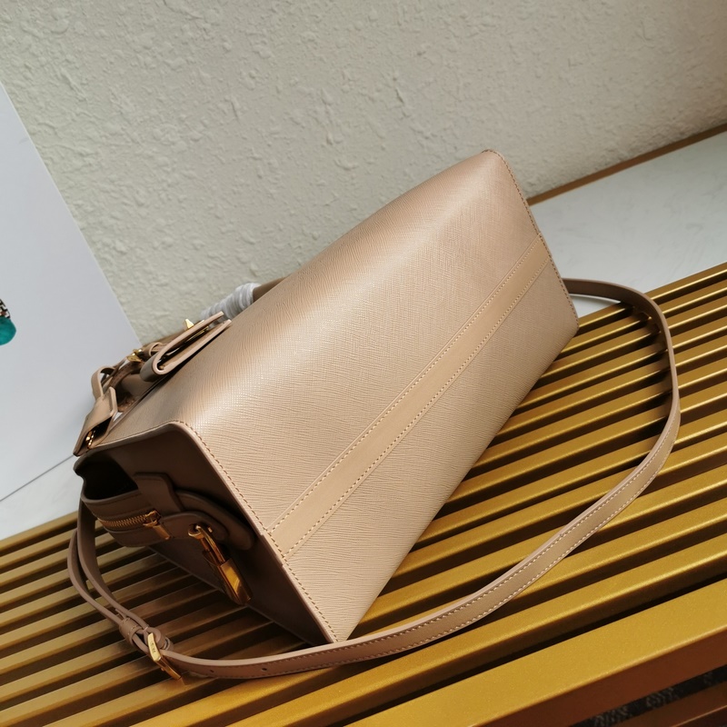 사피아노 가죽과 송아지 가죽으로 만든 프라다 핸드백 가죽 이중 손잡이