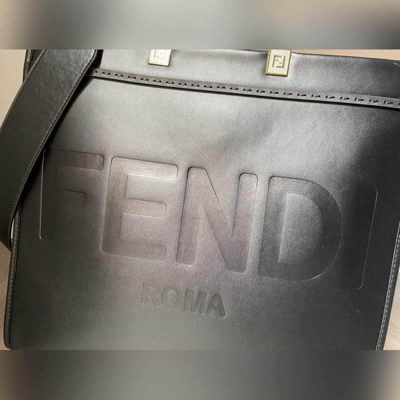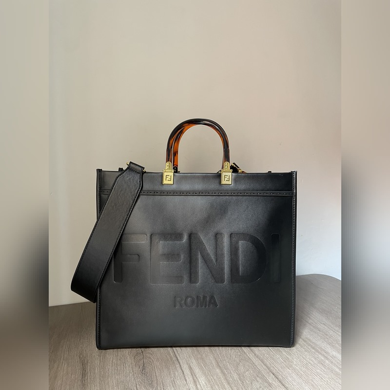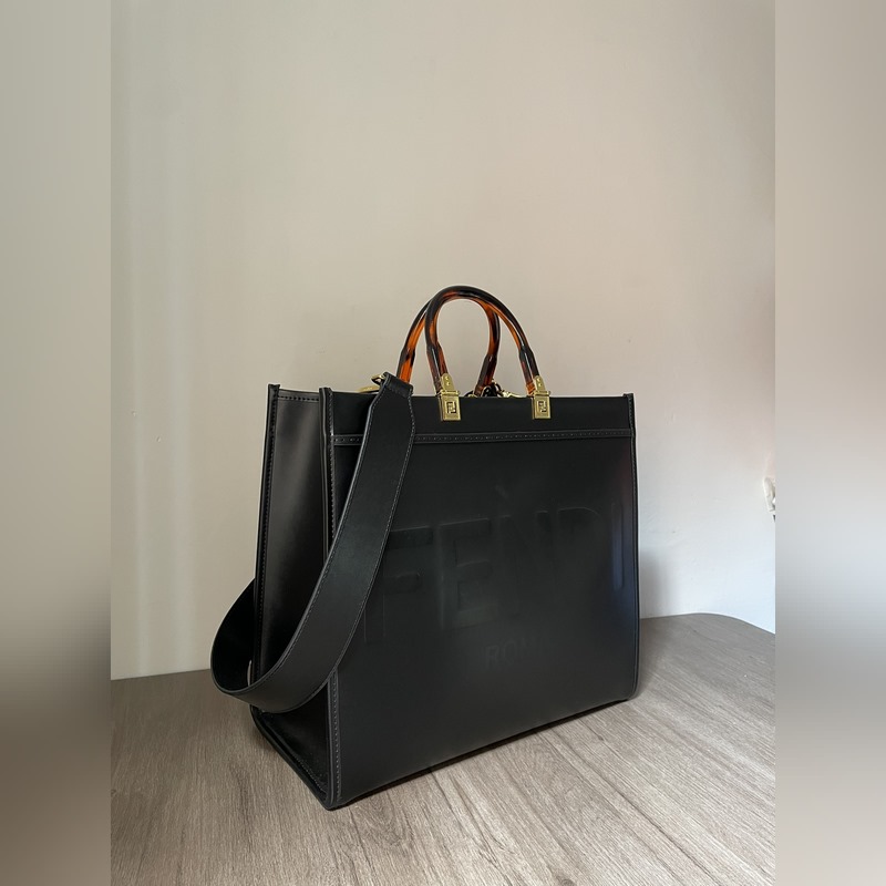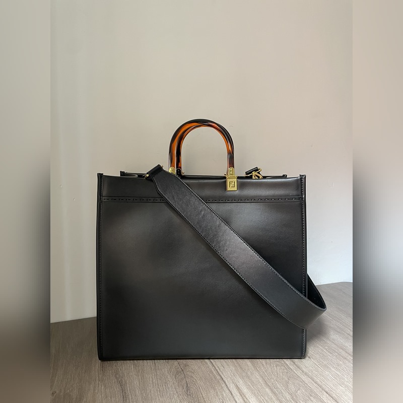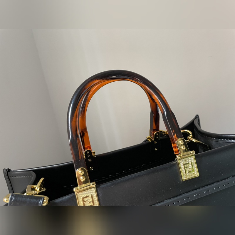 FENDI 토트백 문자 로고 디자인과 레진 손잡이는 가방 전체의 핵심입니