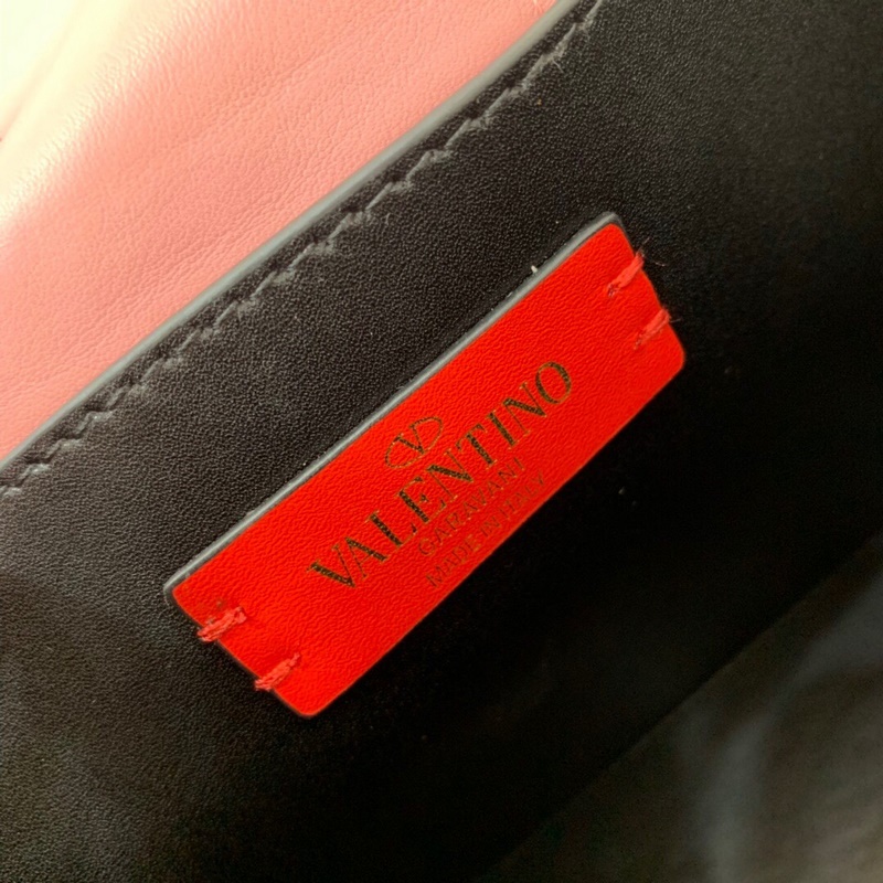 발렌티노 오버사이즈 장식이 돋보이는 송아지 가죽 핸드백. 탈착식 손잡이