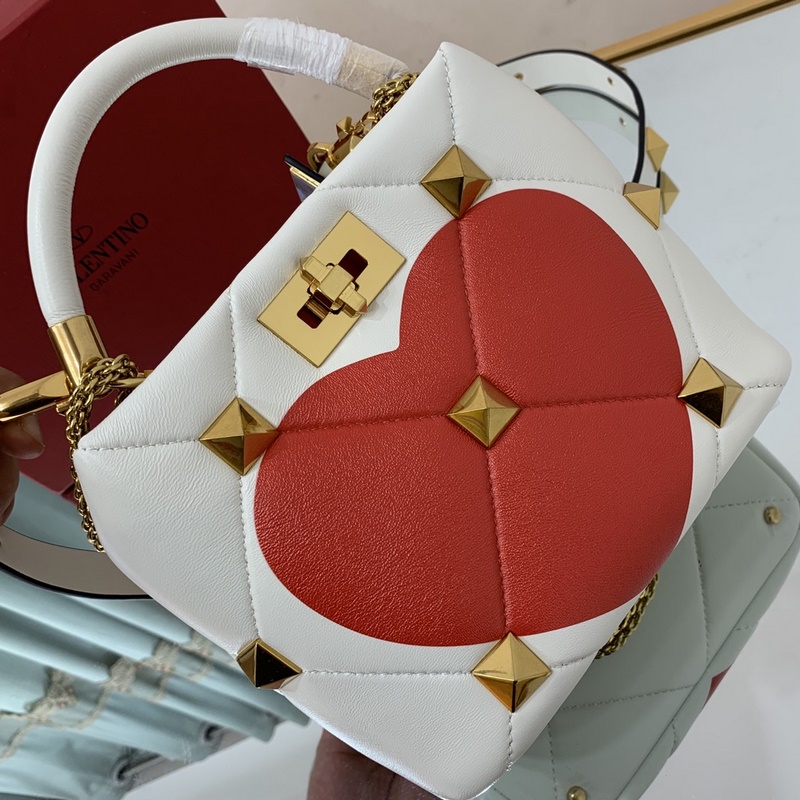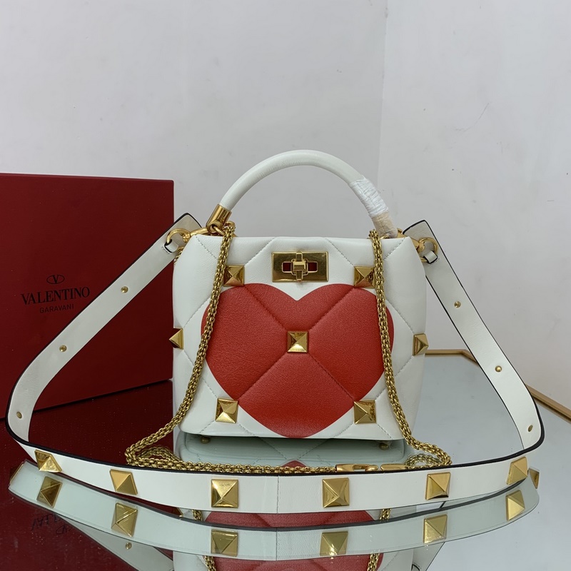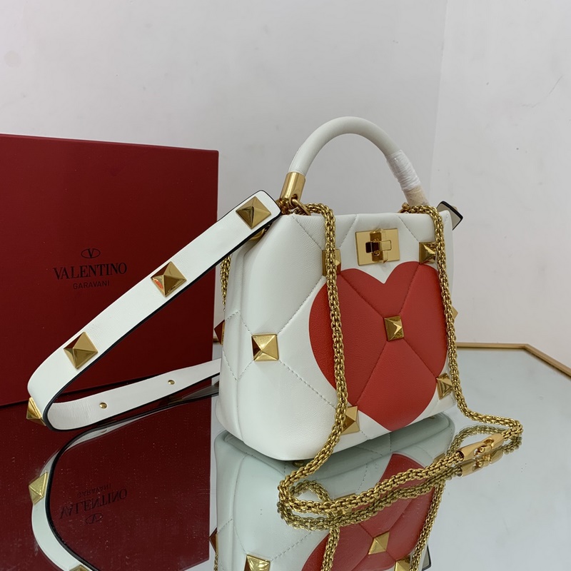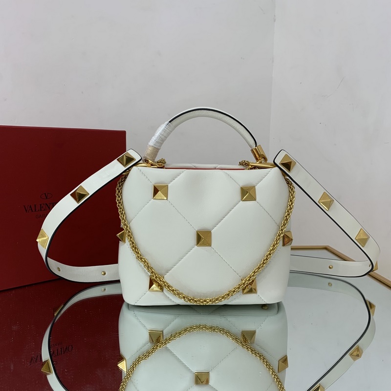 발렌티노 오버사이즈 스터드가 퀼팅된 양가죽 소재의 작은 체인 백 어깨