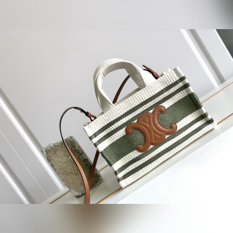CELINE CABAS THAIS 작은 CELINE 스트라이프 패브릭 핸