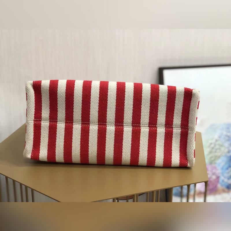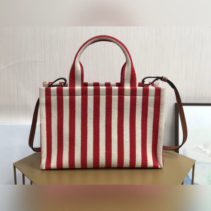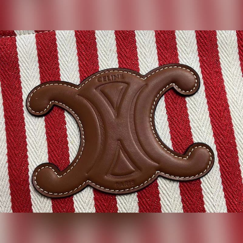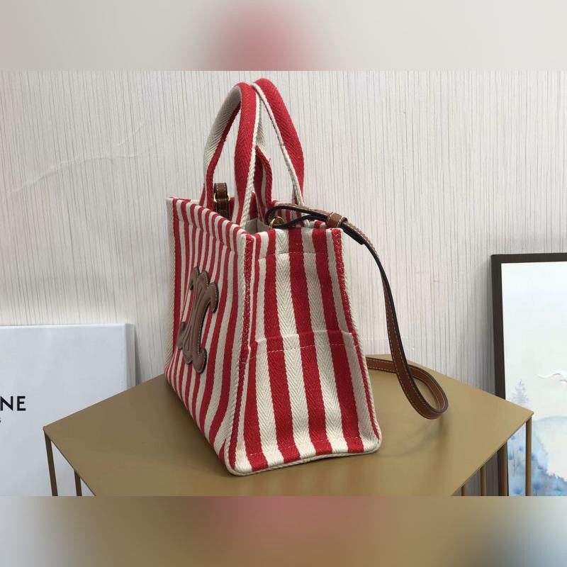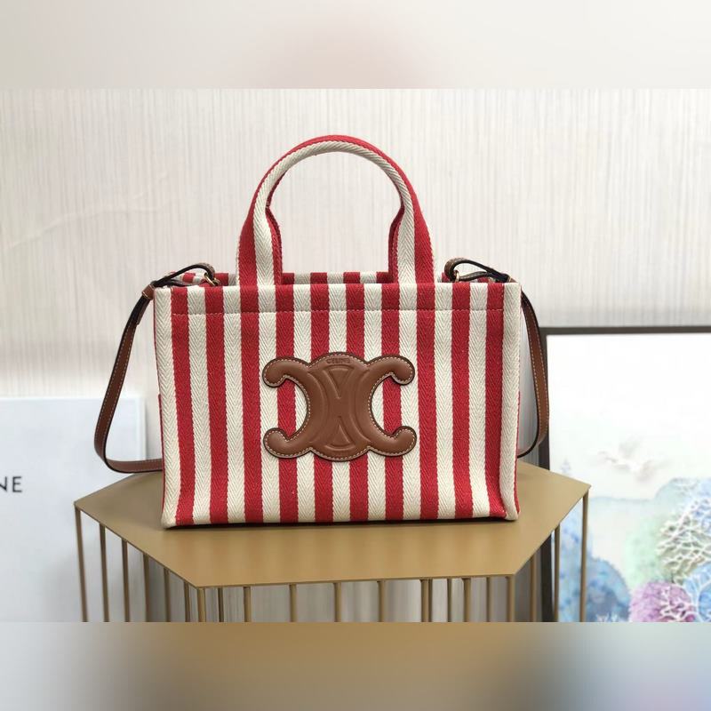 CELINE CABAS THAIS 작은 줄무늬 패브릭과 소가죽 핸드백 자