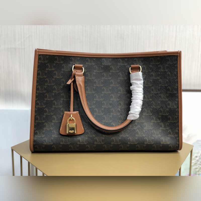 CELINE CABAS 로고 인쇄 소가죽 수평 미니 핸드백 최신 미니 가