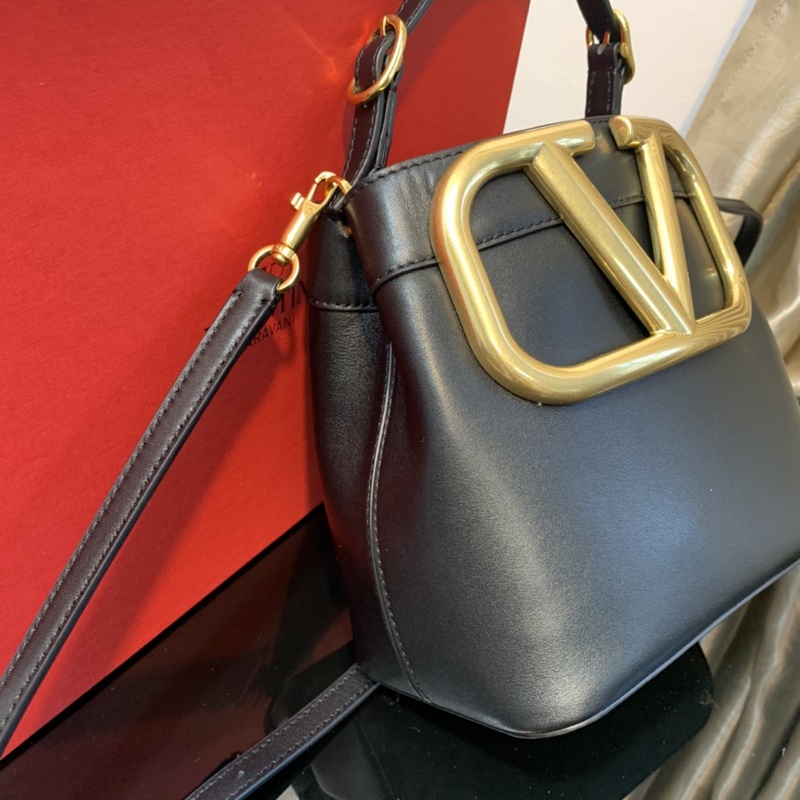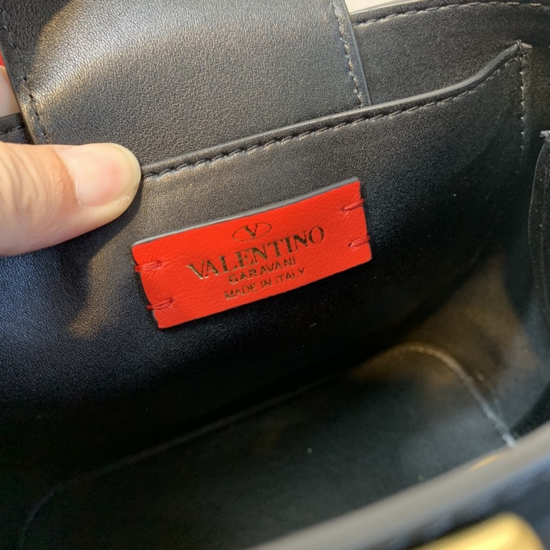 발렌티노 송아지 가죽 핸드백 대형 장식 탈착식 손잡이 크로스 바디