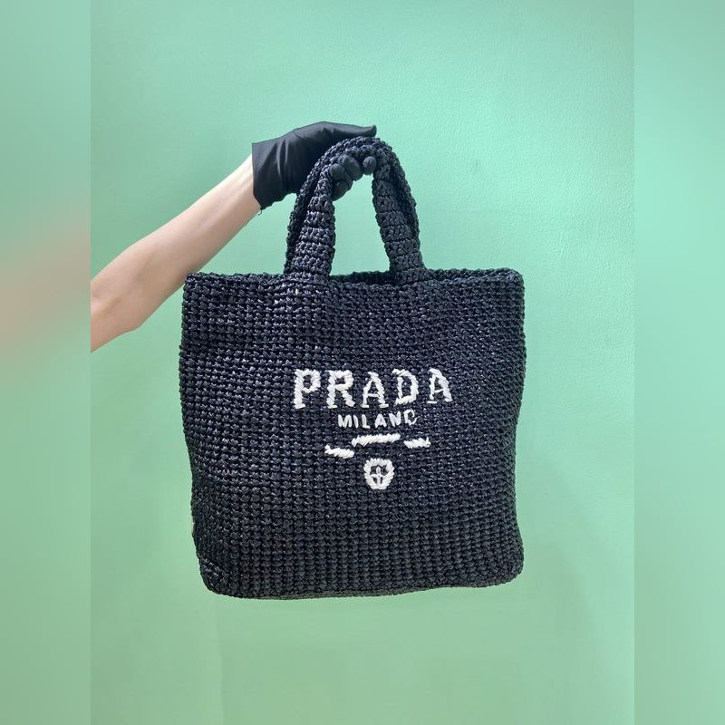 프라다 파이버 토트백 모델 1BG408 블랙 이 라피아 토트백은 수입 라